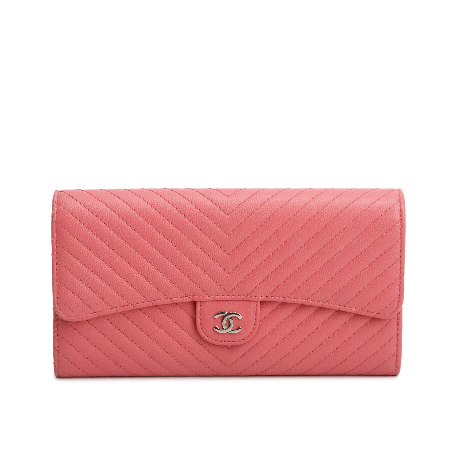Pink Chevron Caviar Leather Classic Long Flap Wallet