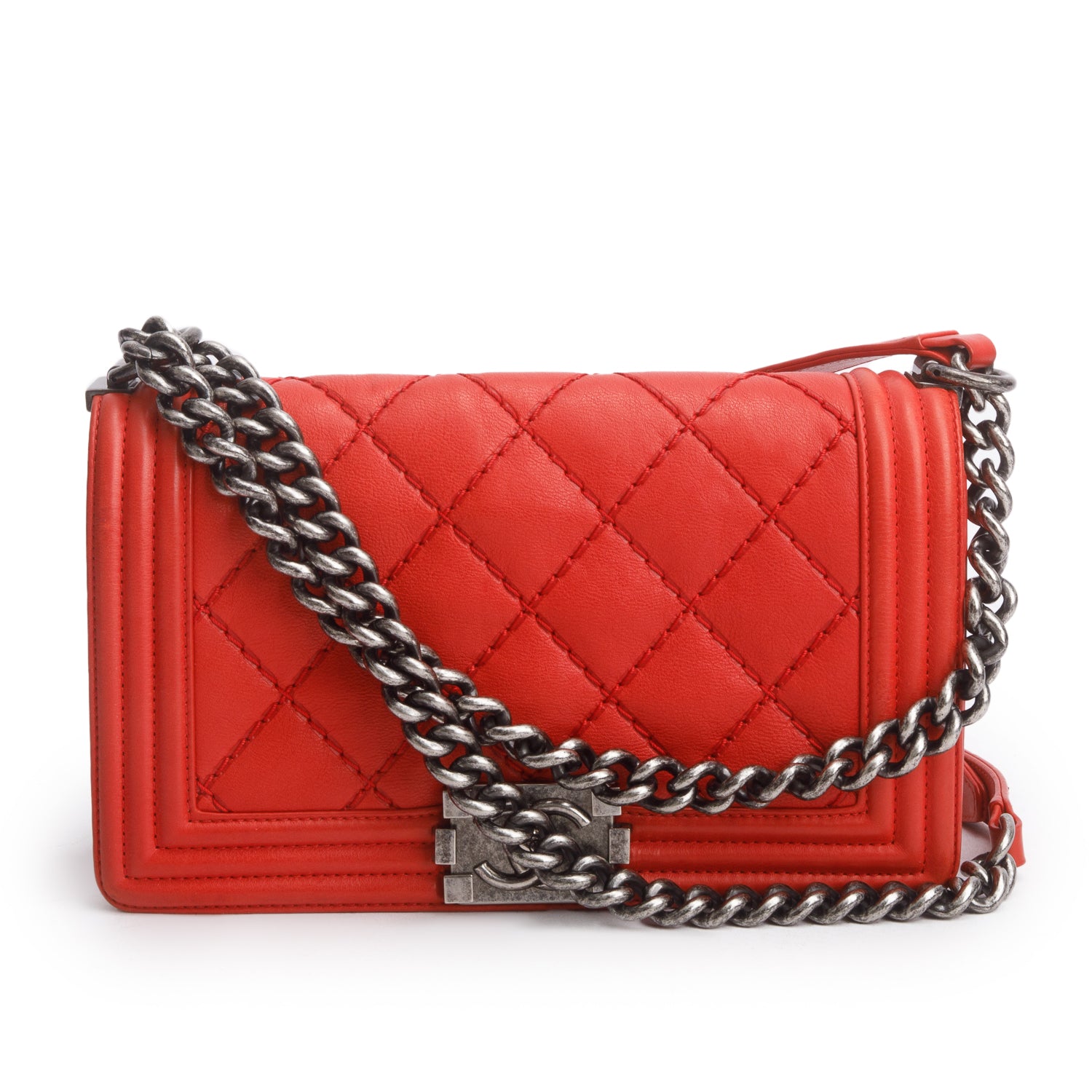 Red Lambskin Stitch Quilted Medium Boy Bag w/ Box & Receipt