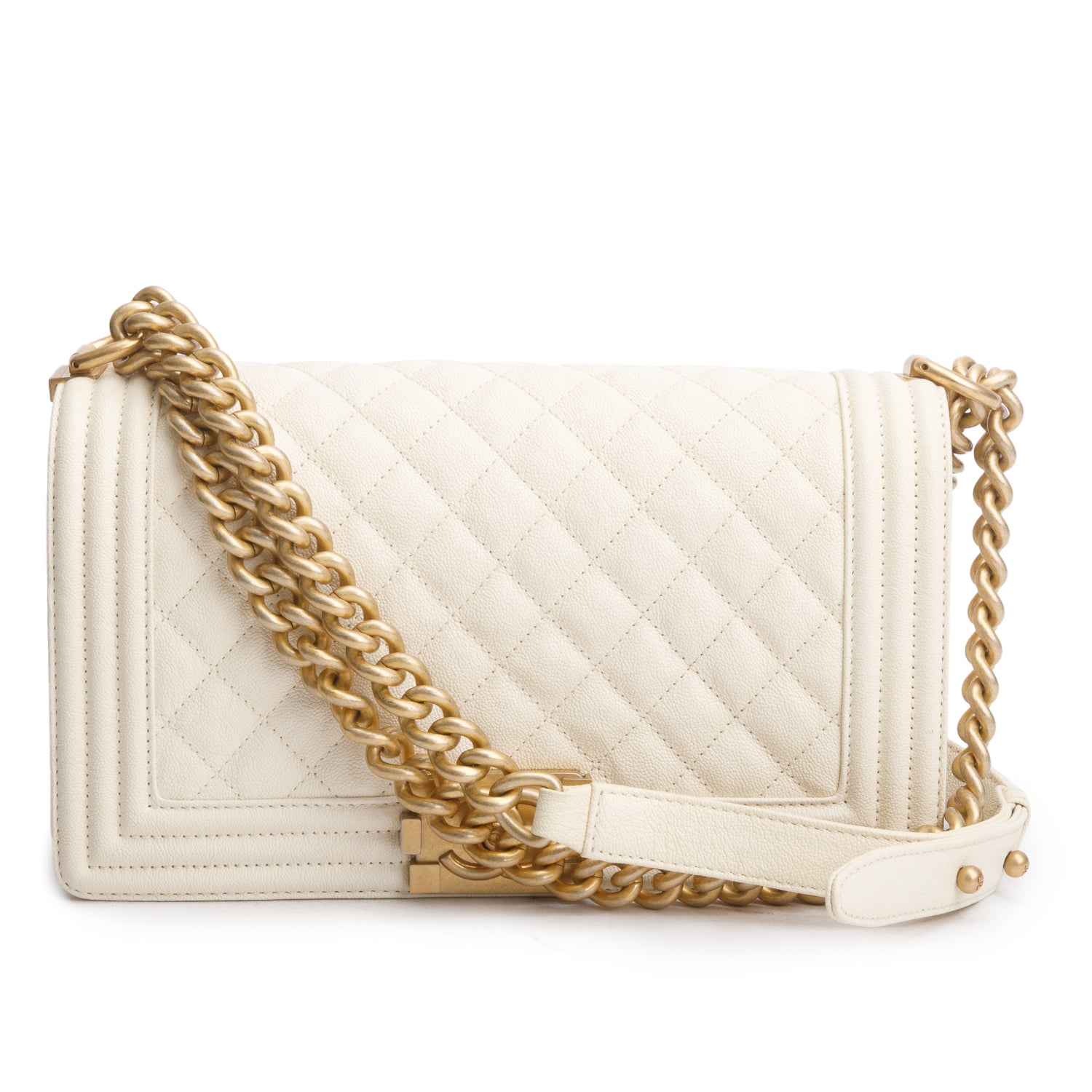White Caviar Quilted Medium Boy Flap Bag w/ Authenticity Card