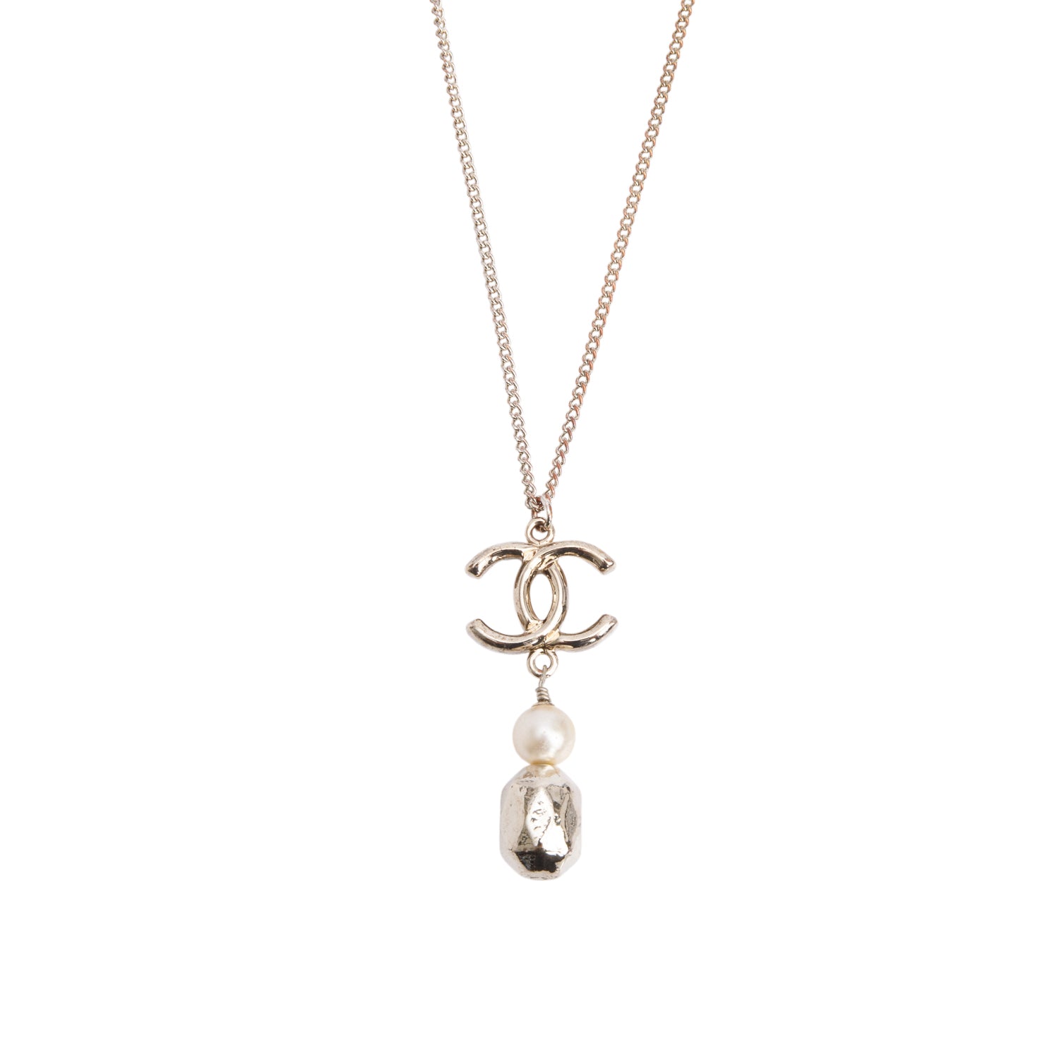 Palladium-Plated Faux Pearl CC Drop Pendant Necklace