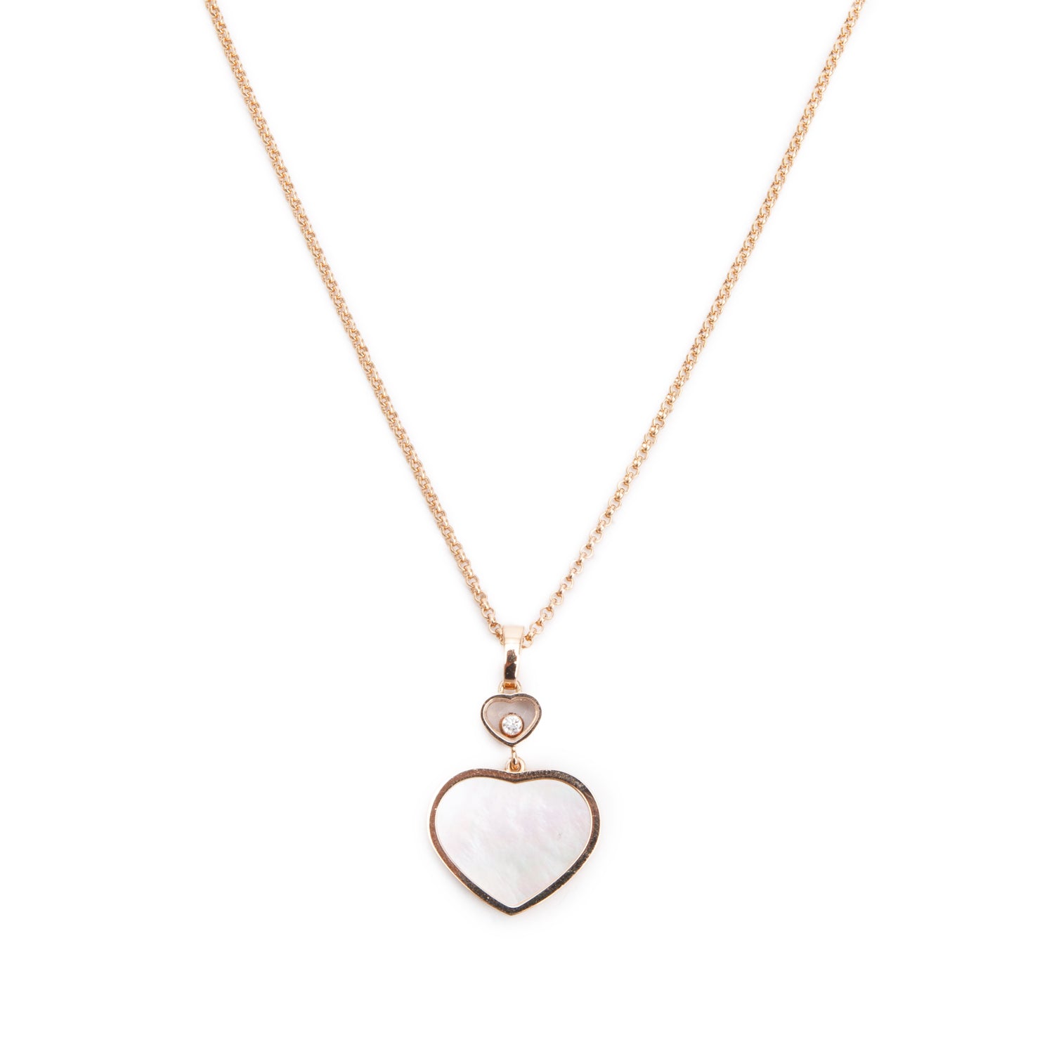 18k Rose Gold Mother of Pearl Diamond Happy Heart Pendant Necklace w/ Box & Certificate