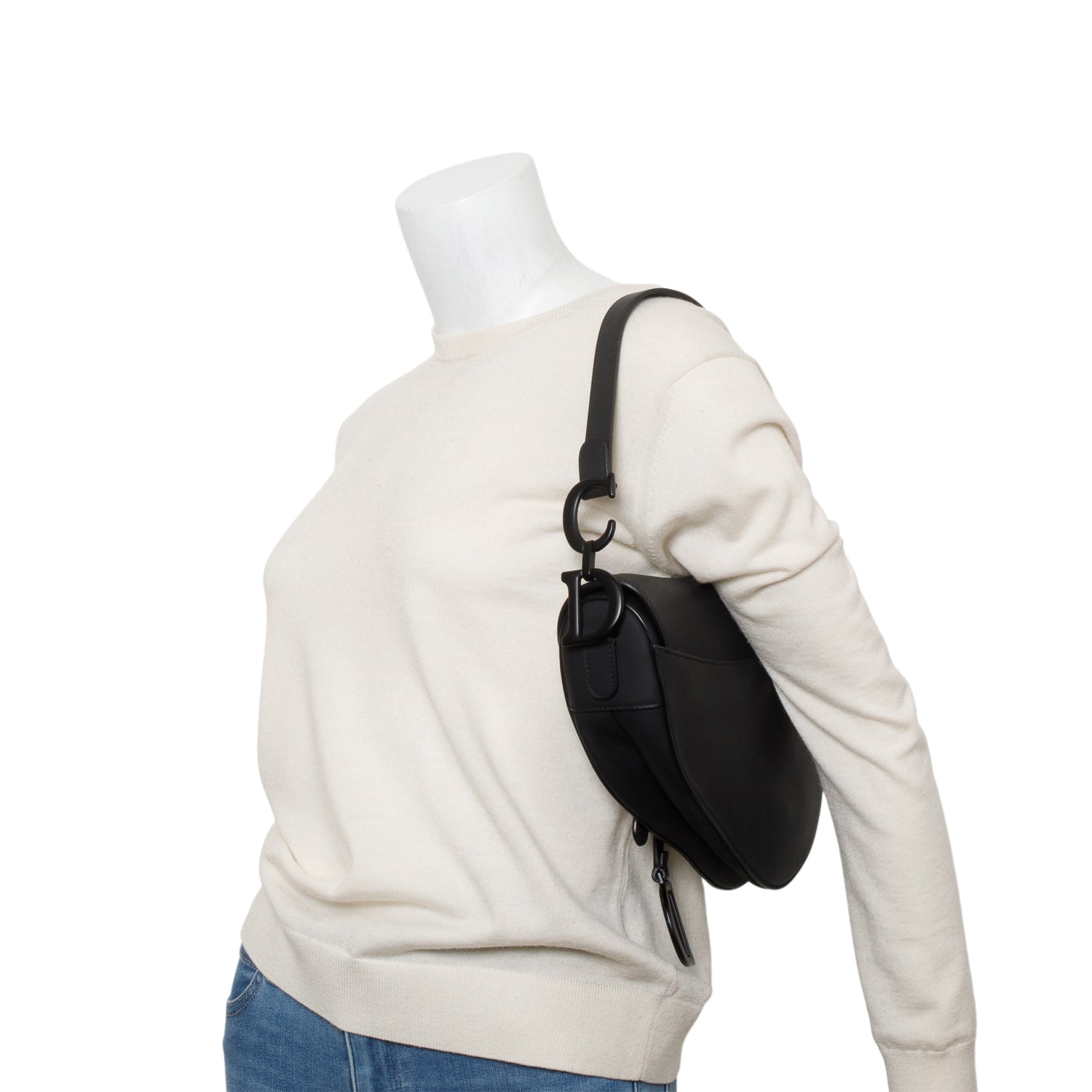 2021 Black Ultramatte Calfskin Leather Medium Saddle Bag w/ Box