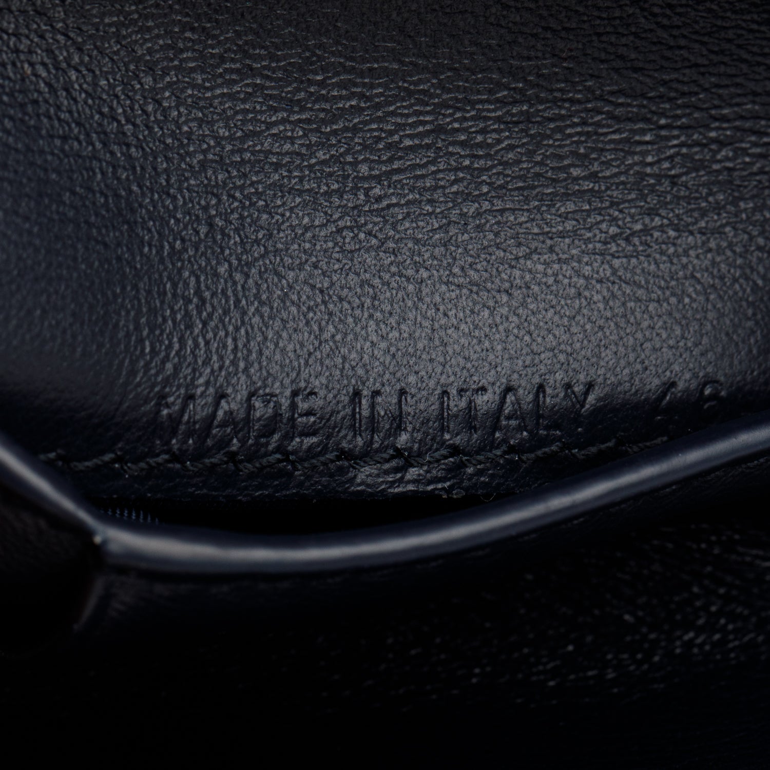 Condition: Very Good; slight scratches and tarnishing at hardware; slight scuffing at exterior corners and edges; slight scratches at interior leather.