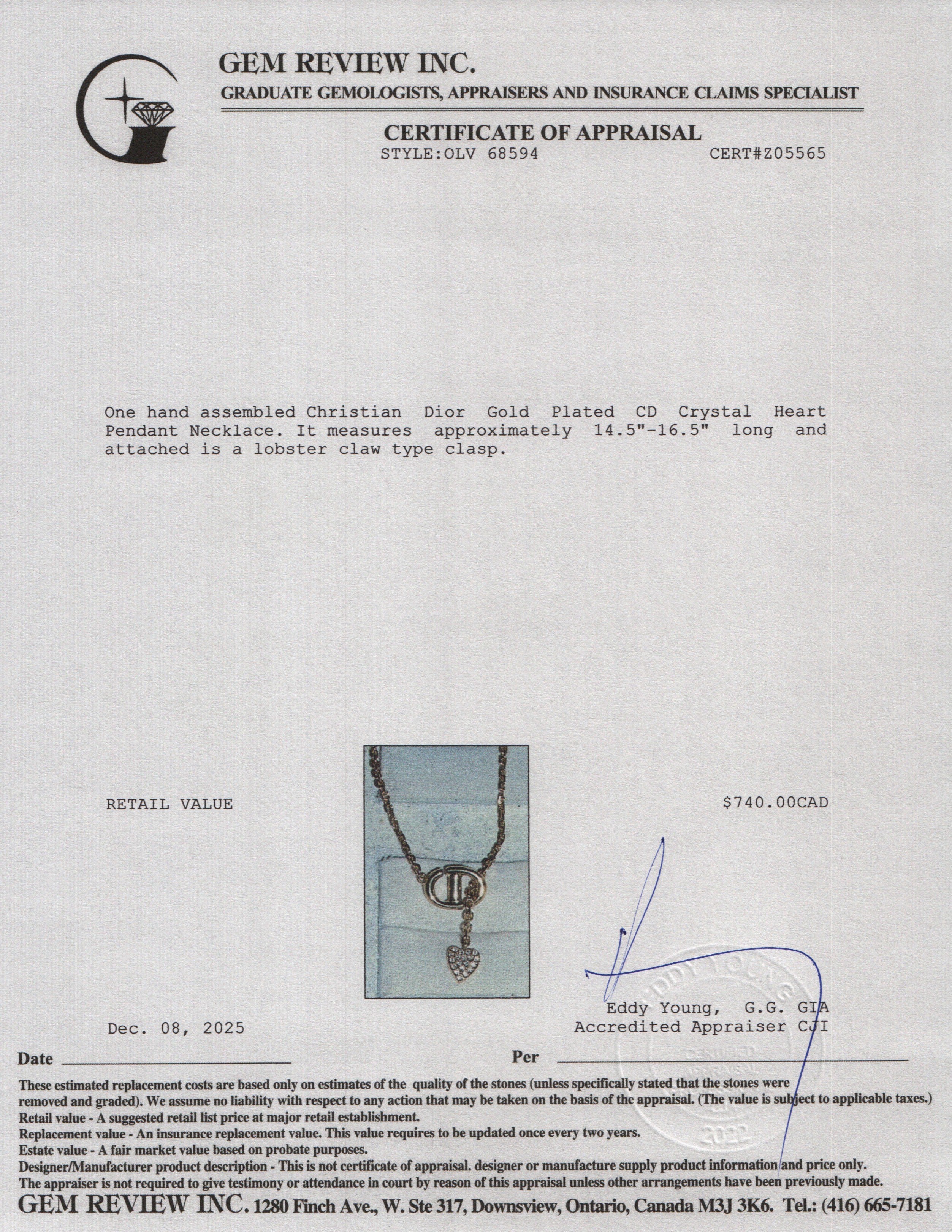 Gold Plated CD Crystal Heart Pendant Necklace w/ Box