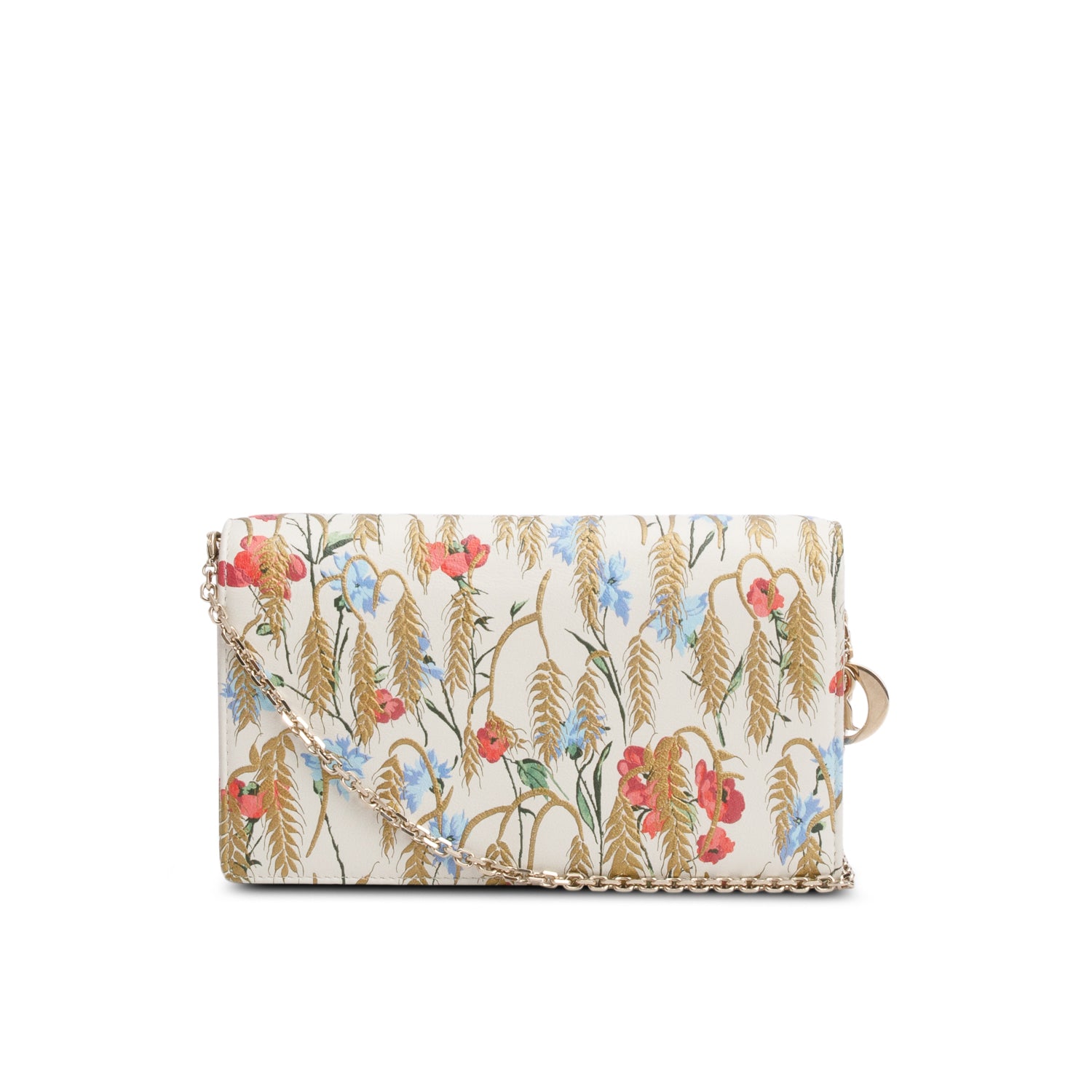 2020 White Leather Hibiscus Lady Dior Wallet on Chain w/ Inserts