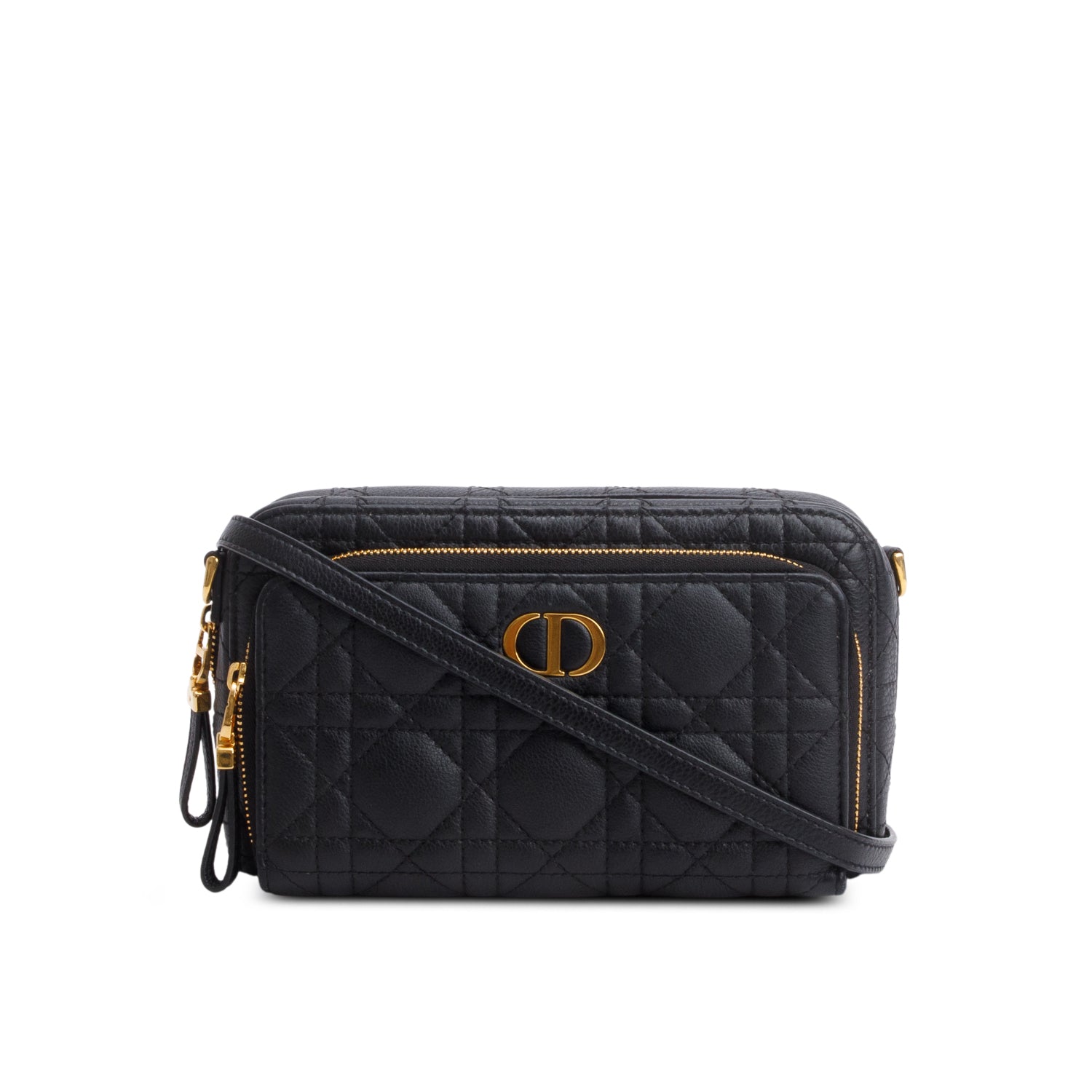 2021 Black Supple Calfskin Caro Double Pouch w/ Strap