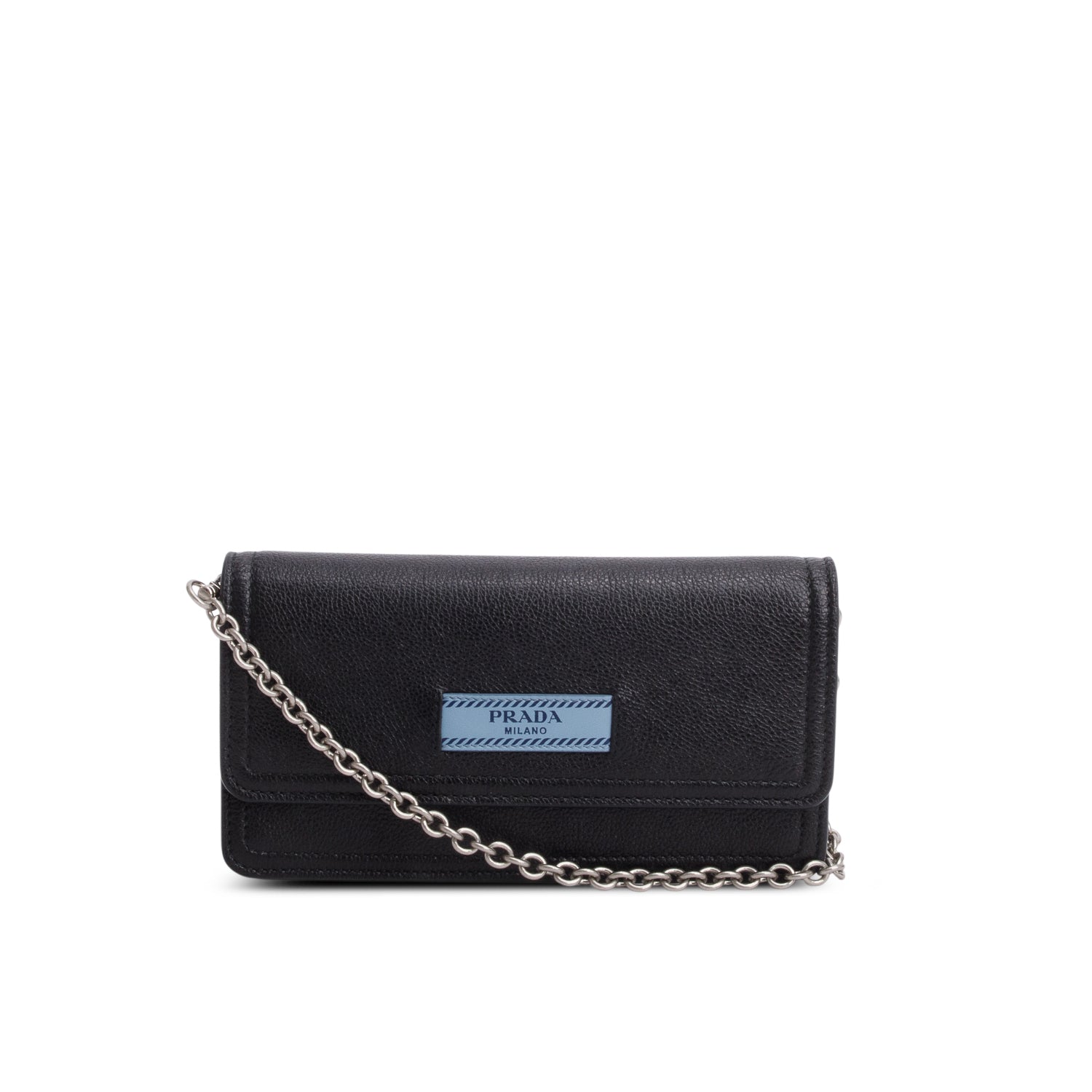 Black Glace Calf Etiquette Wallet on Chain w/ Authenticity Card