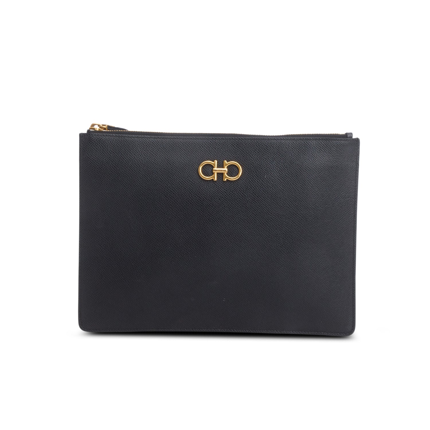 Black Pebbled Calfskin Gancini Zip Wrislet