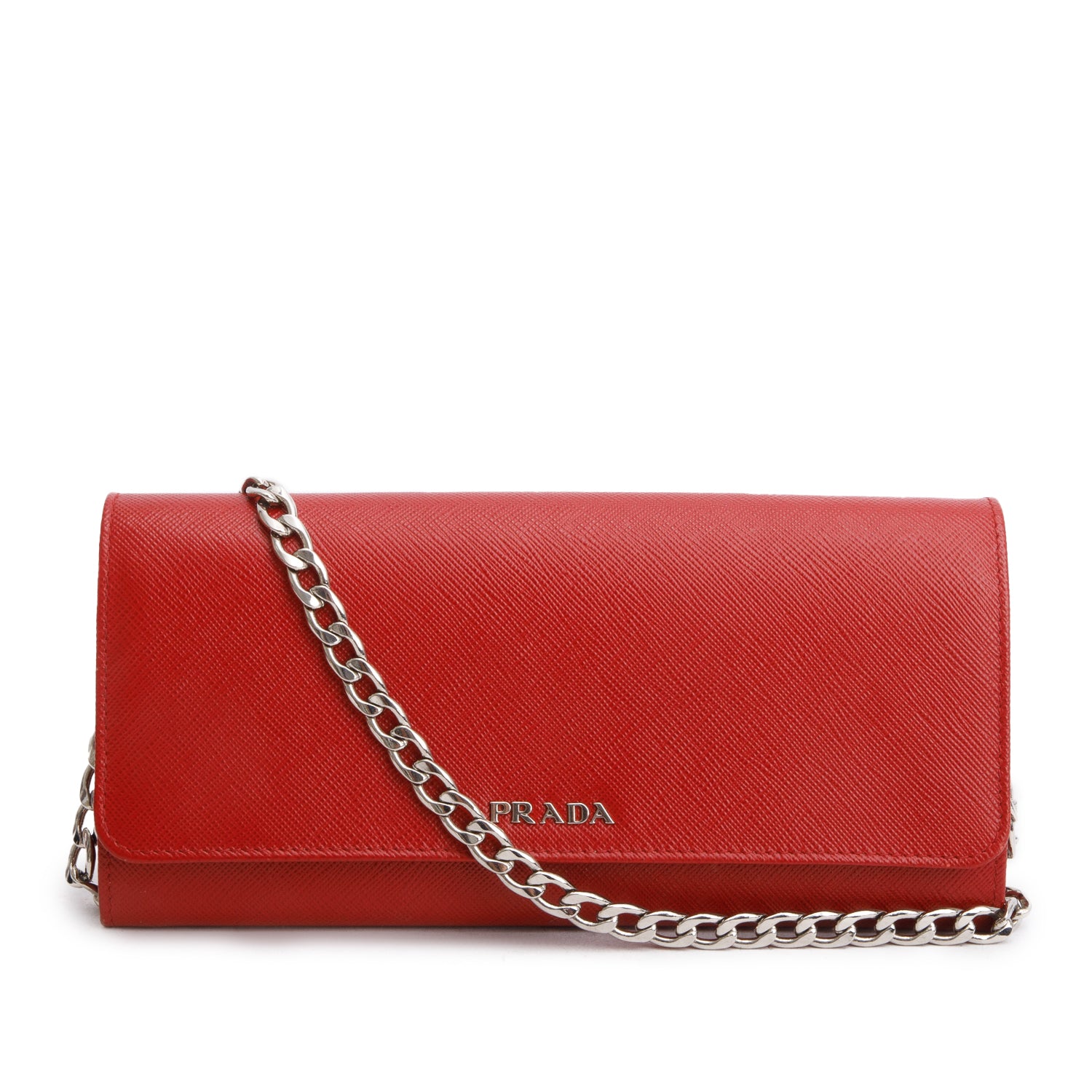 Red Saffiano Leather Chain Wallet