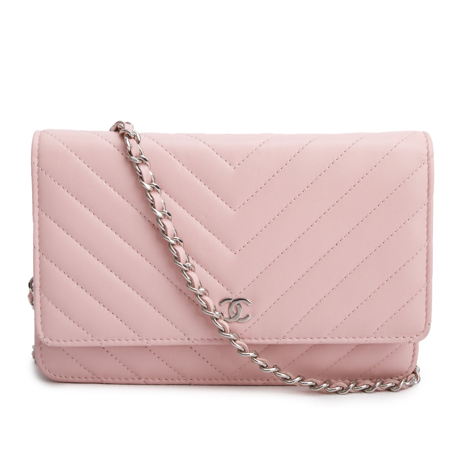 2022 Pink Lambskin Chevron Quilted Wallet on Chain w/ Box & Receipt