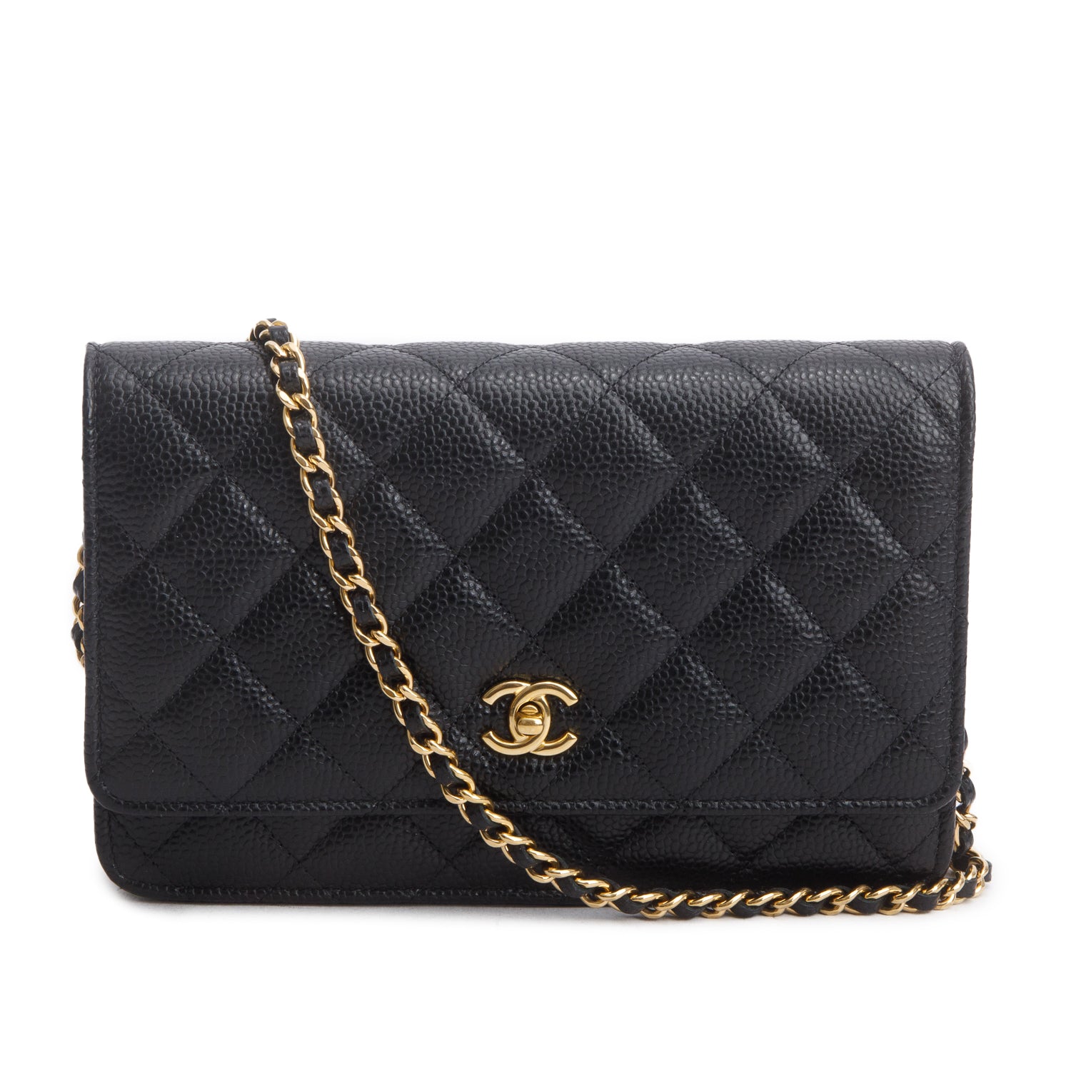 Black Quilted Caviar Leather Classic Wallet on Chain w/ Authenticity Card