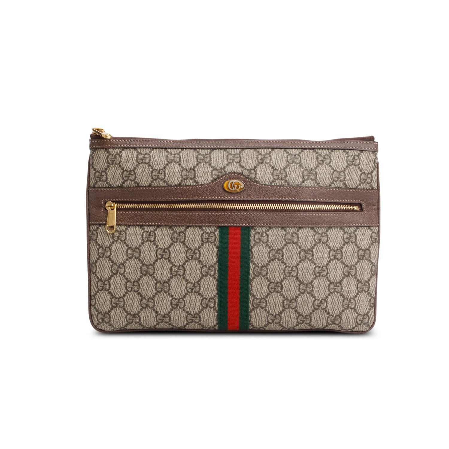 Brown GG Supreme Monogram Large Ophidia Pouch Clutch w/ Box