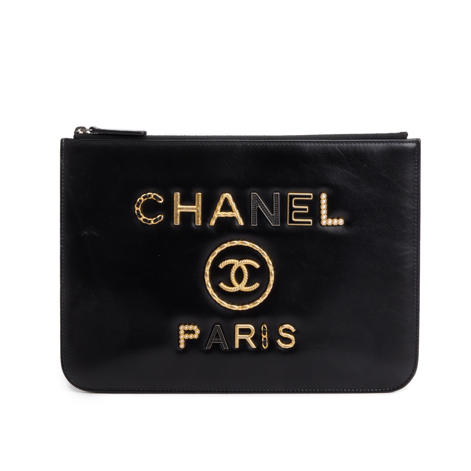 2022 Black Ultra Matte Calfskin Saddle Chain Wallet Pouch w/ Box