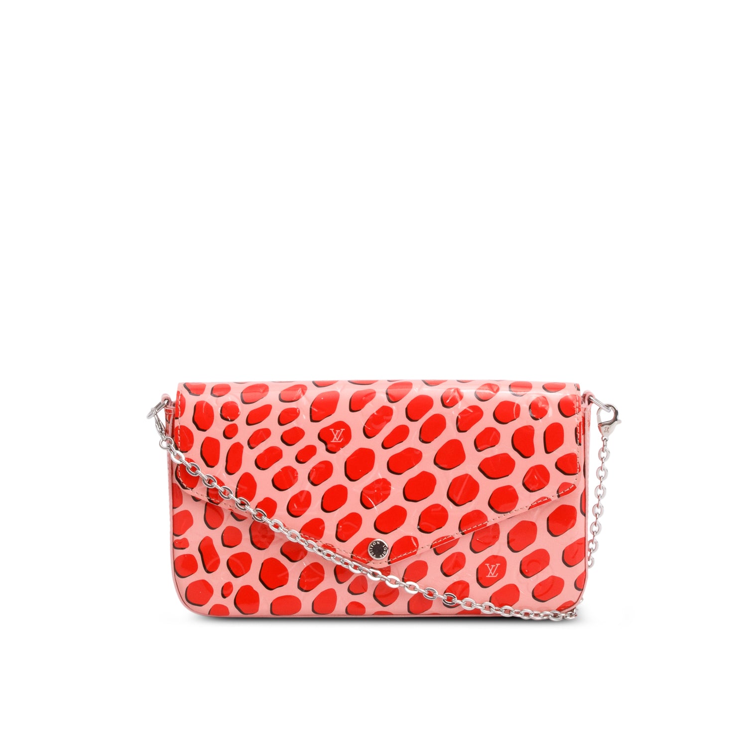 Pink Vernis Jungle Dots Pochette Felicie Chain Wallet w/ Insert