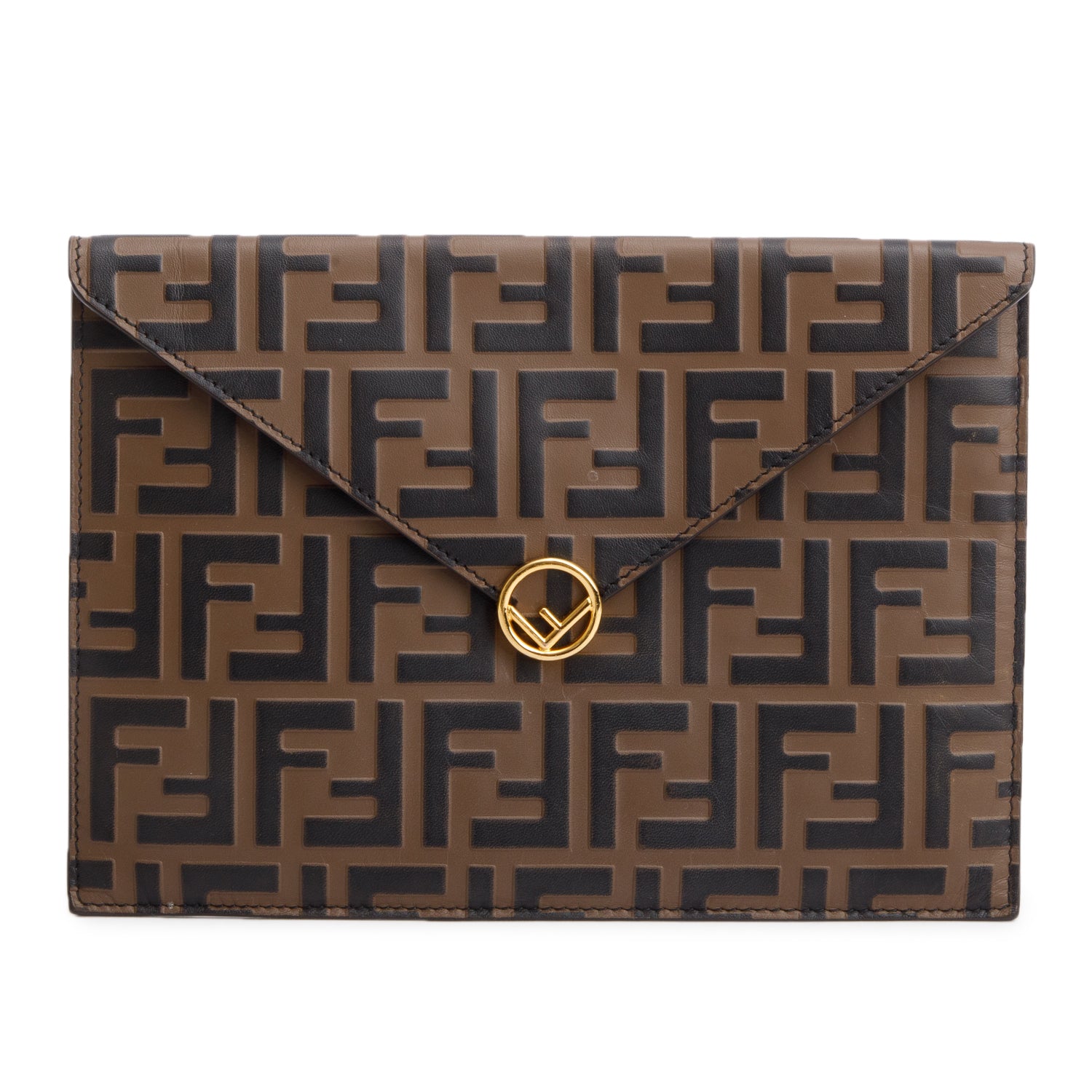 Brown Vitello Ceylon FF 1974 Embossed FF Diamonds Flat Envelope Pouch