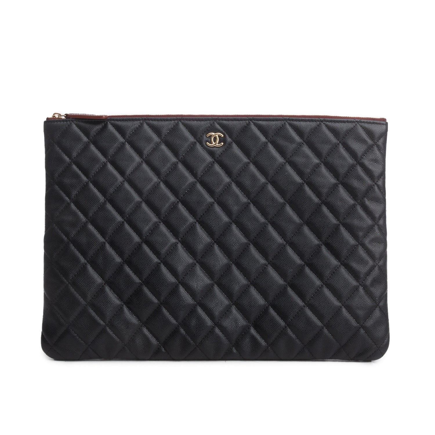 Black Caviar Quilted Classic Wallet on Chain w/ Box