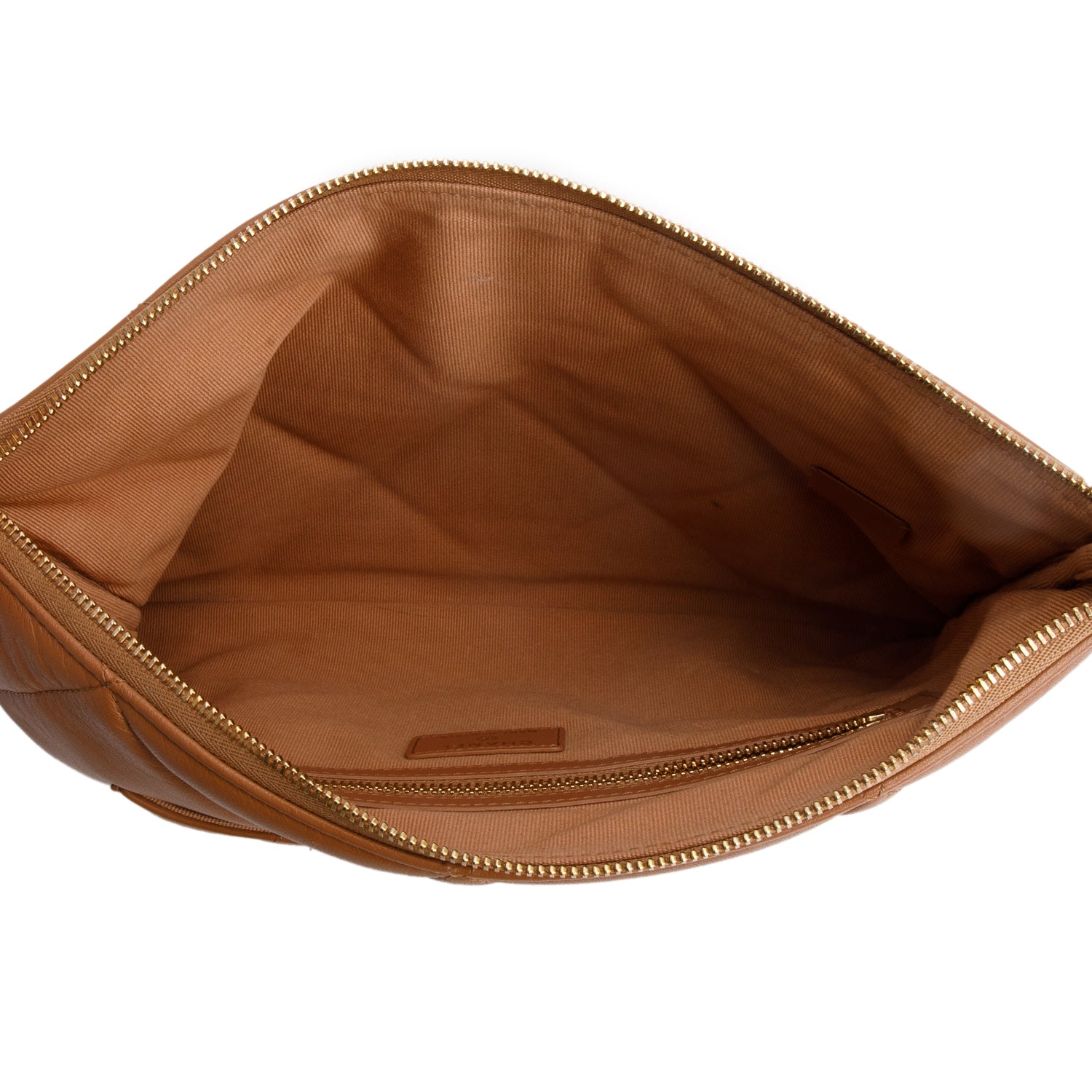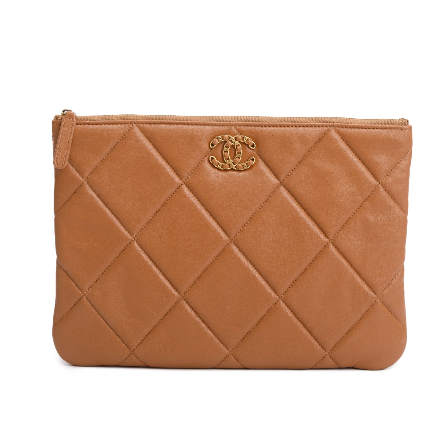 Beige Quilted Lambskin Leather Large 19 Pouch