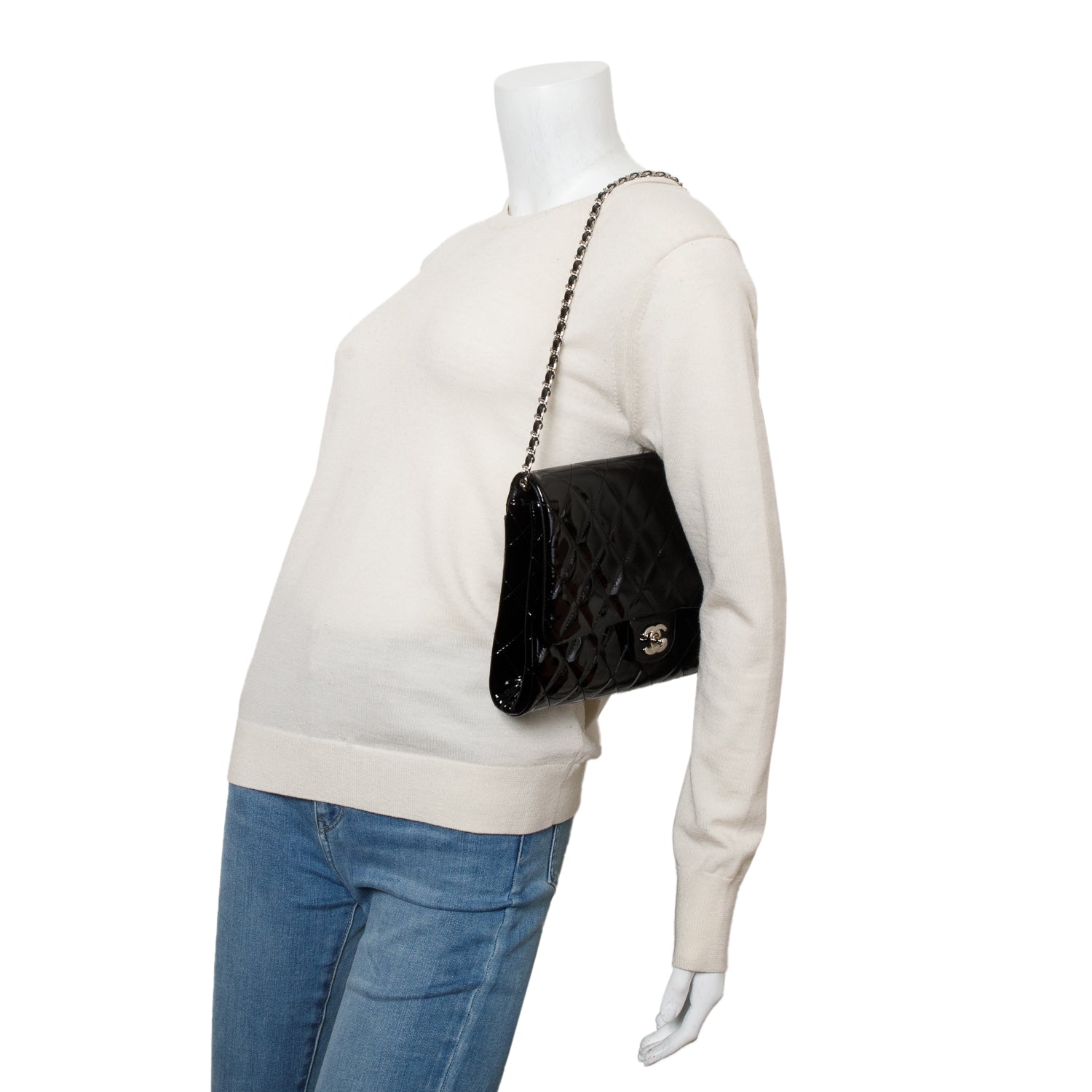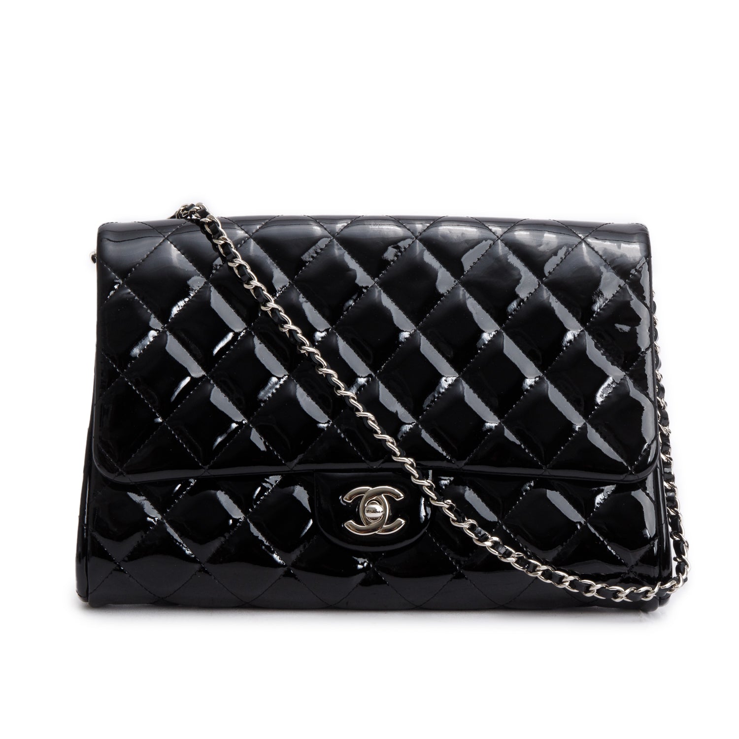 Black Patent Leather Quilted New Clutch with Chain w/ Authenticity Card