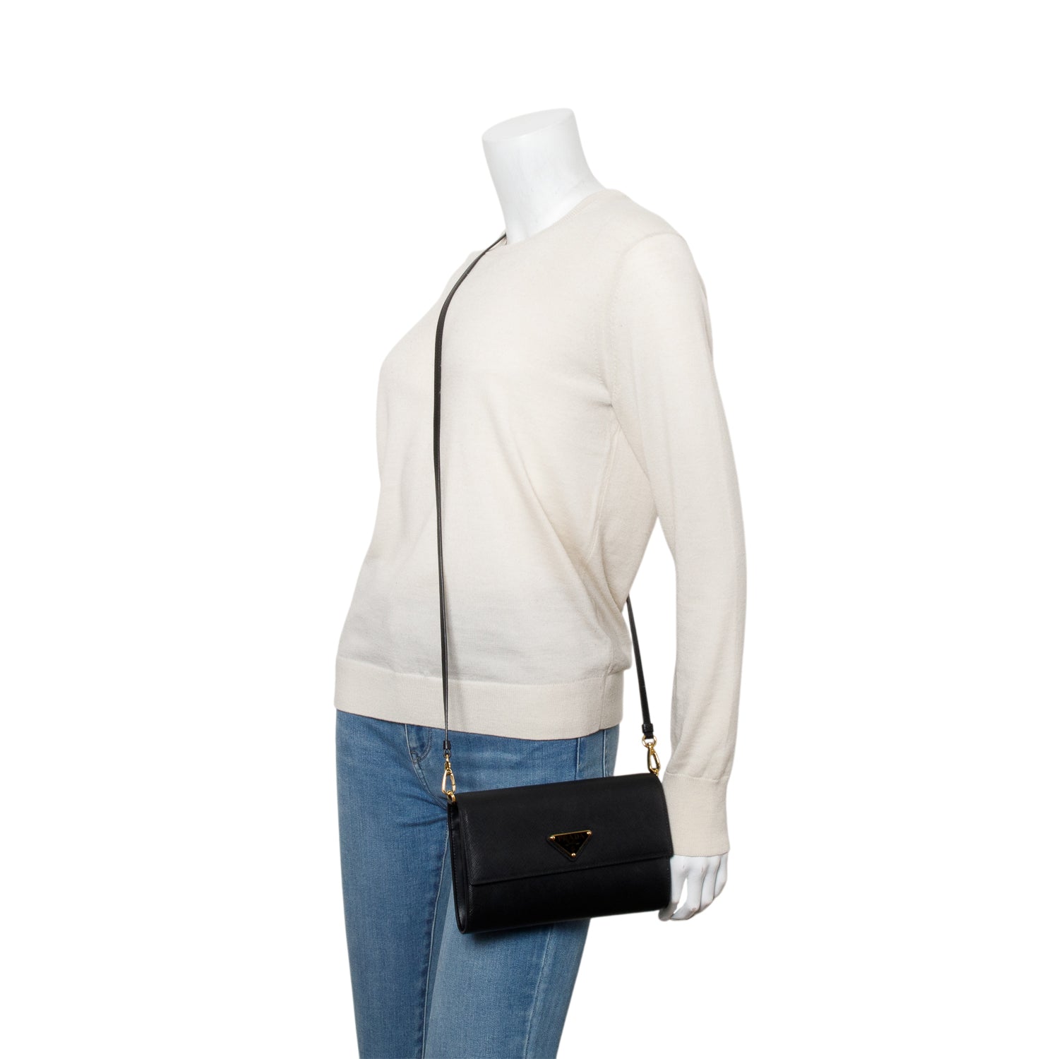 Black Saffiano Leather Flap Wallet w/ Strap & Box