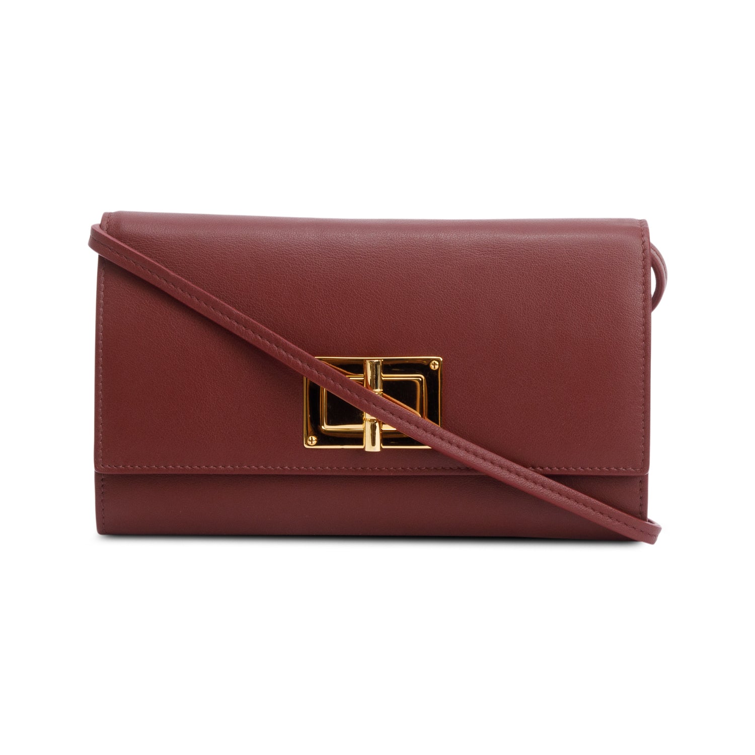 Burgundy Leather Turn Lock Natalia Clutch Crossbody Bag