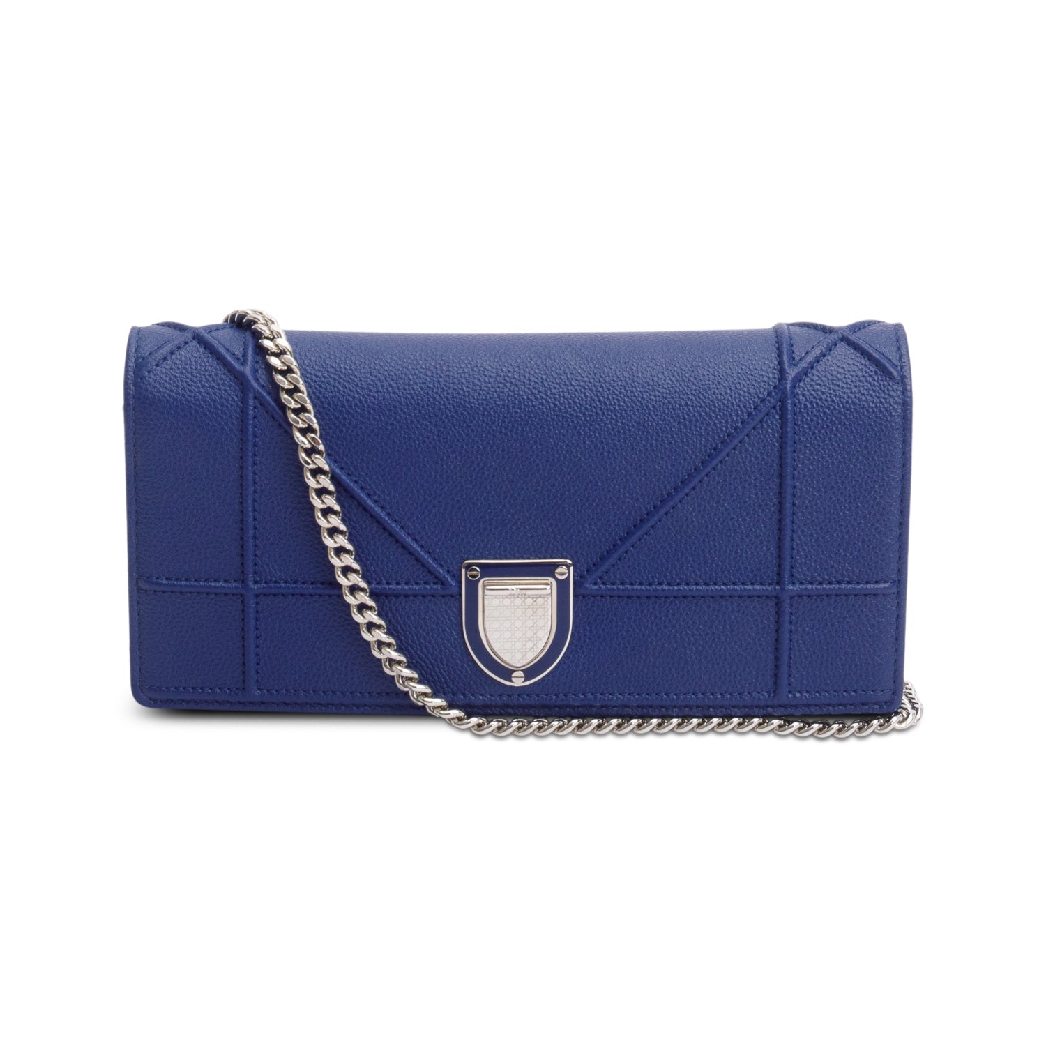 Blue Grained Calfskin Leather Diorama Croisiere Wallet on Chain w/ Box