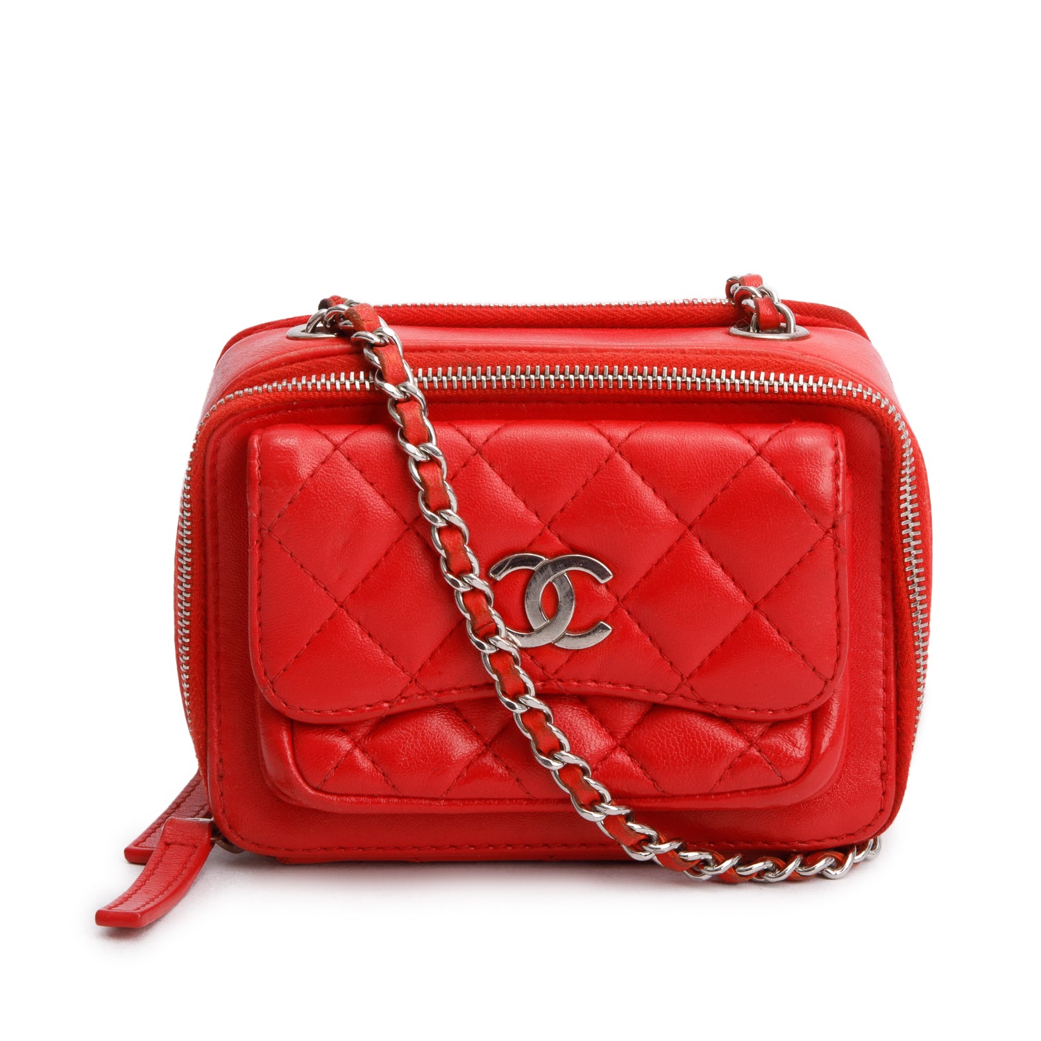 Red Quilted Lambskin Leather Pocket Box Camera Bag