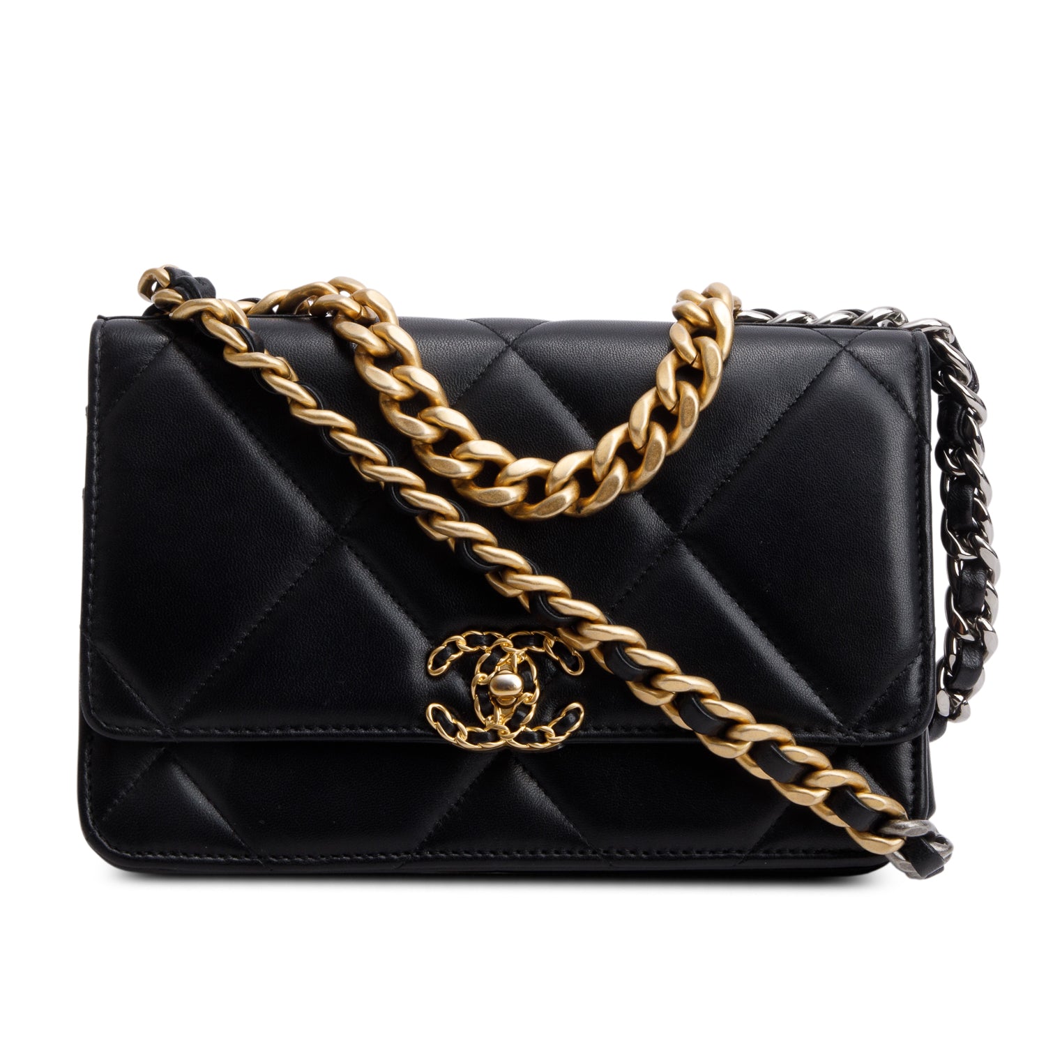 Black Quilted Lambskin Leather 19 Wallet On Chain w/ Box
