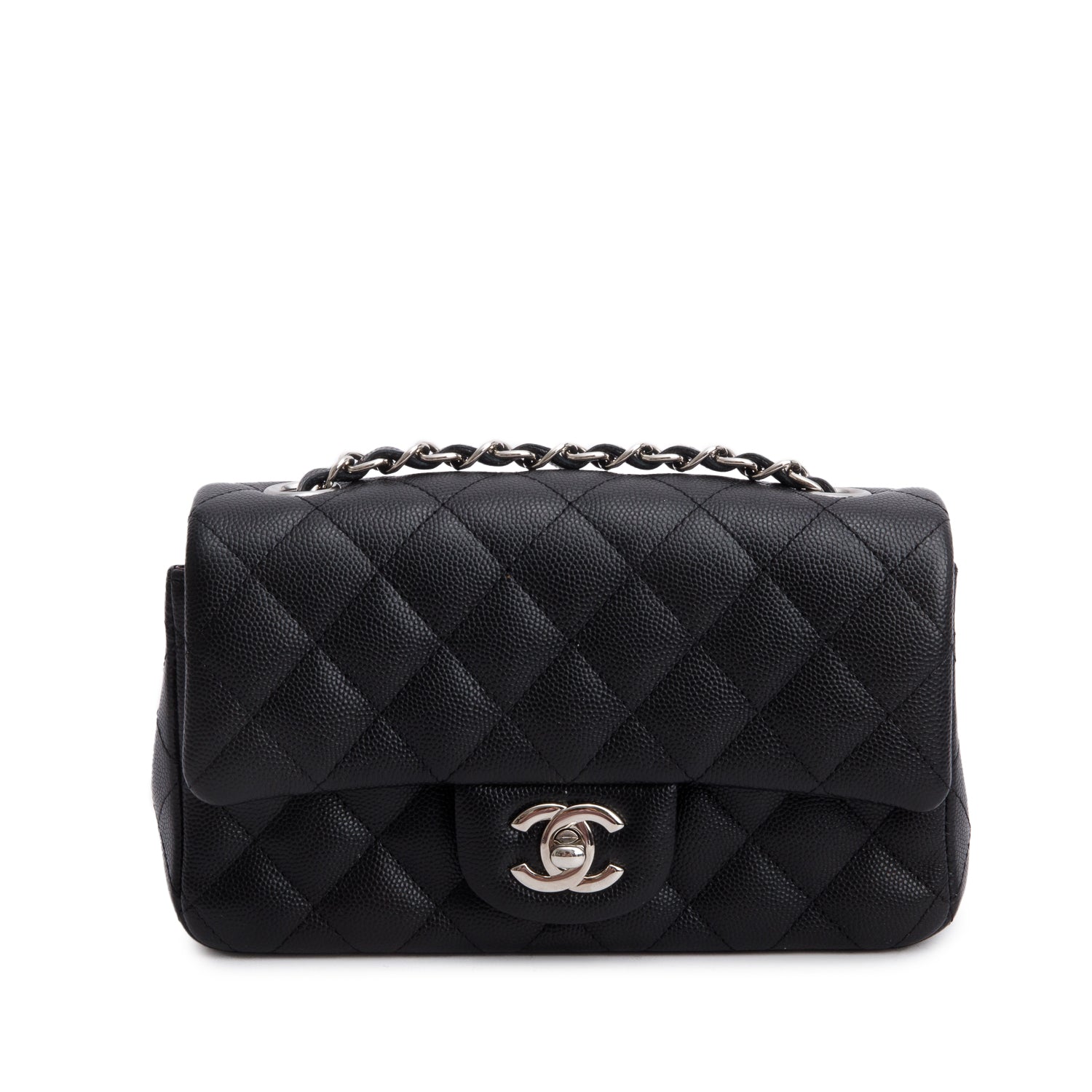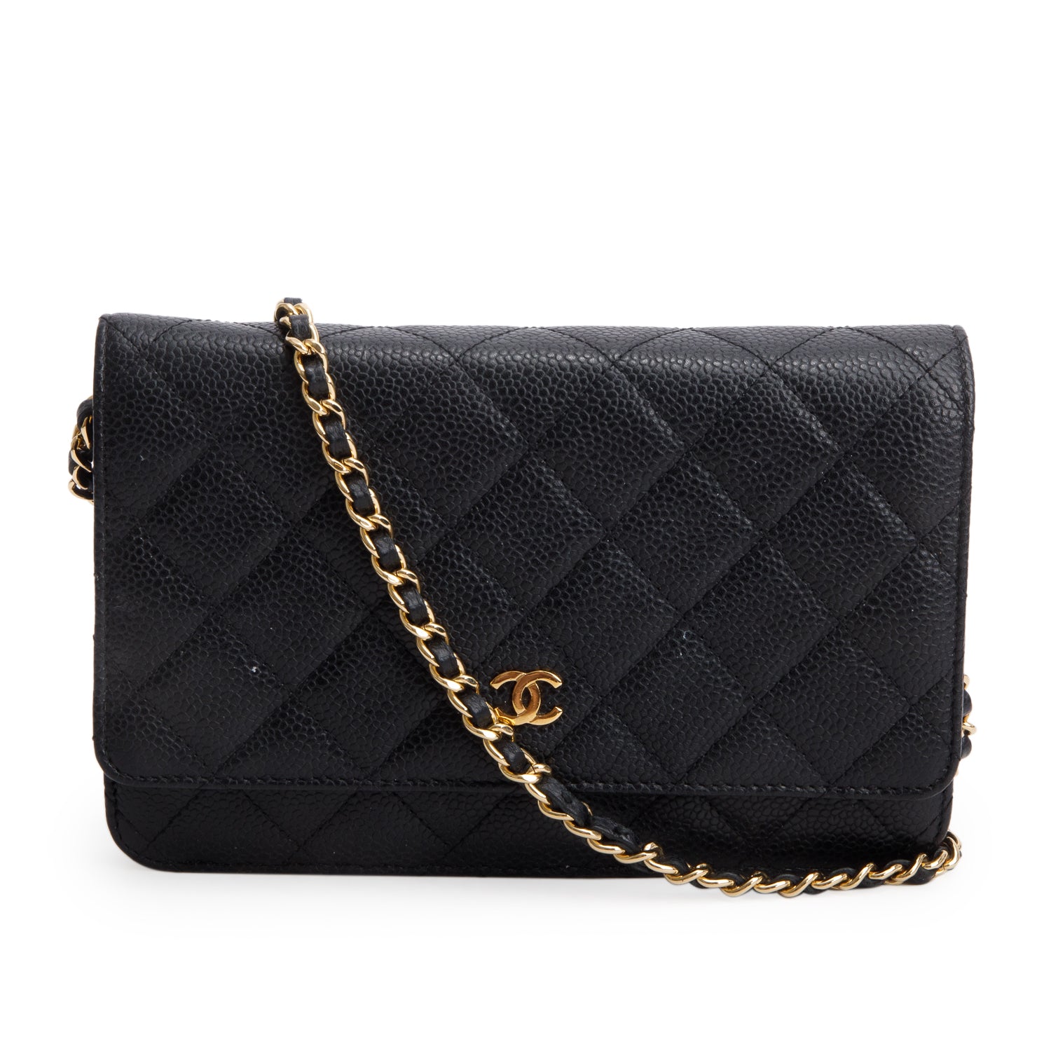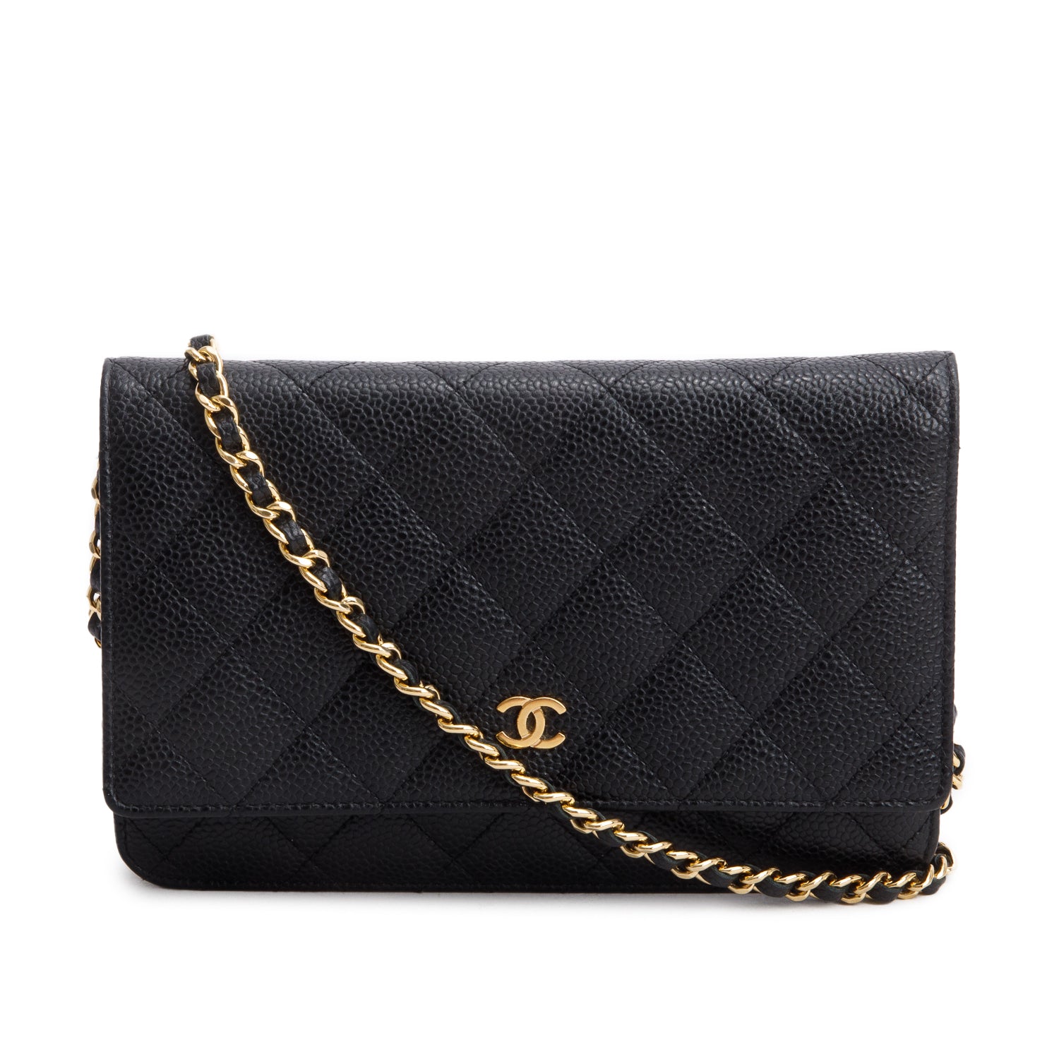 Black Quilted Caviar Leather Classic Wallet on Chain w/ Authenticity Card