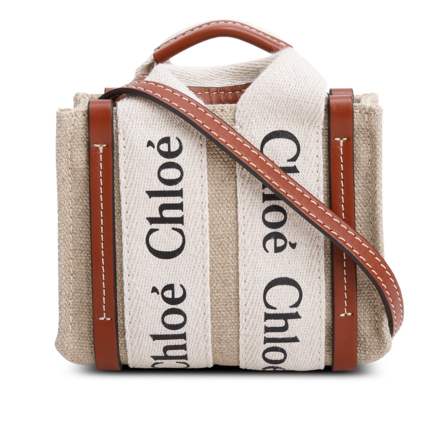 Beige Cotton Calfskin Mini Woody Ribbon Tote w/ Box