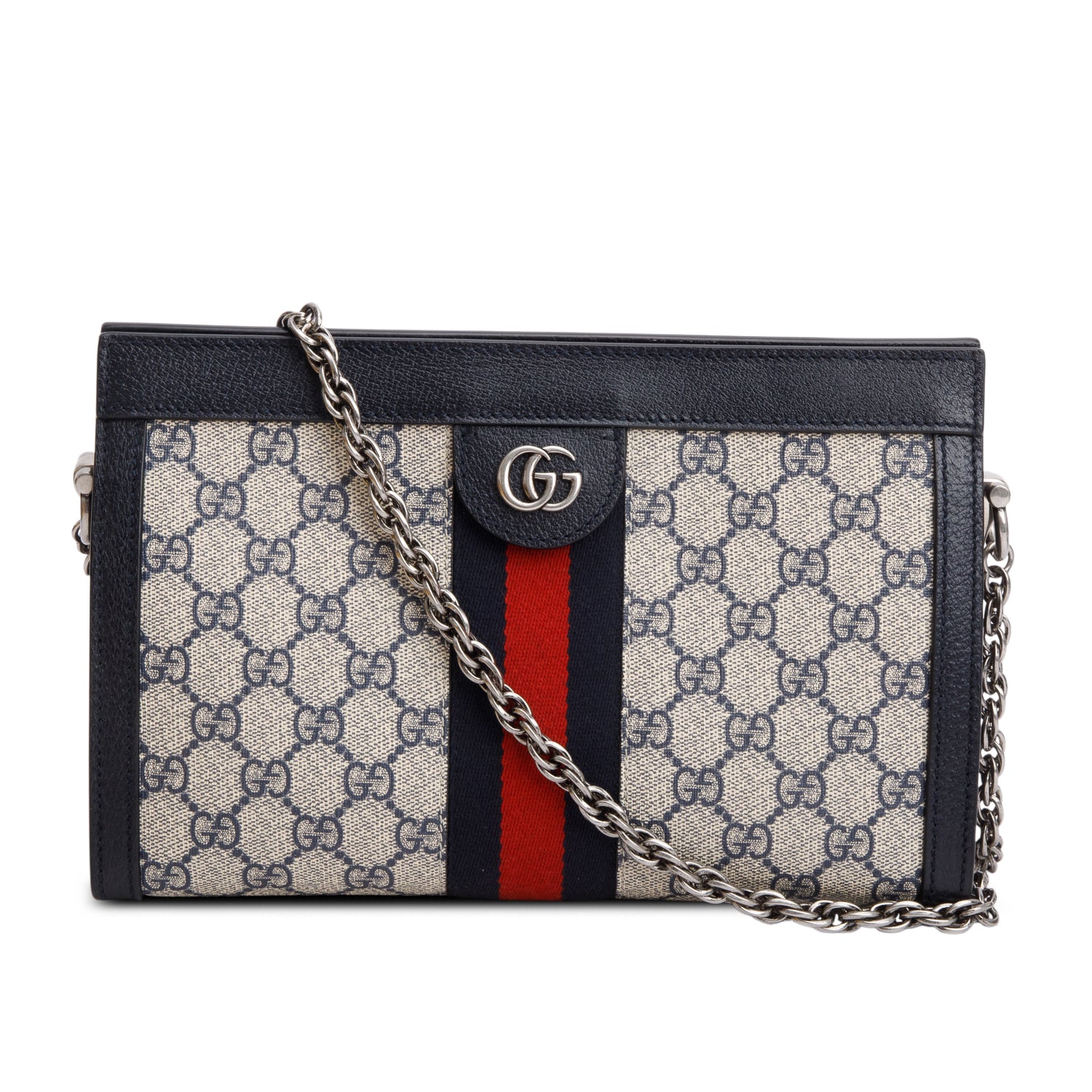 Black GG Supreme Monogram Textured Calfskin Web Medium Ophidia Chain Shoulder Bag w/ Box