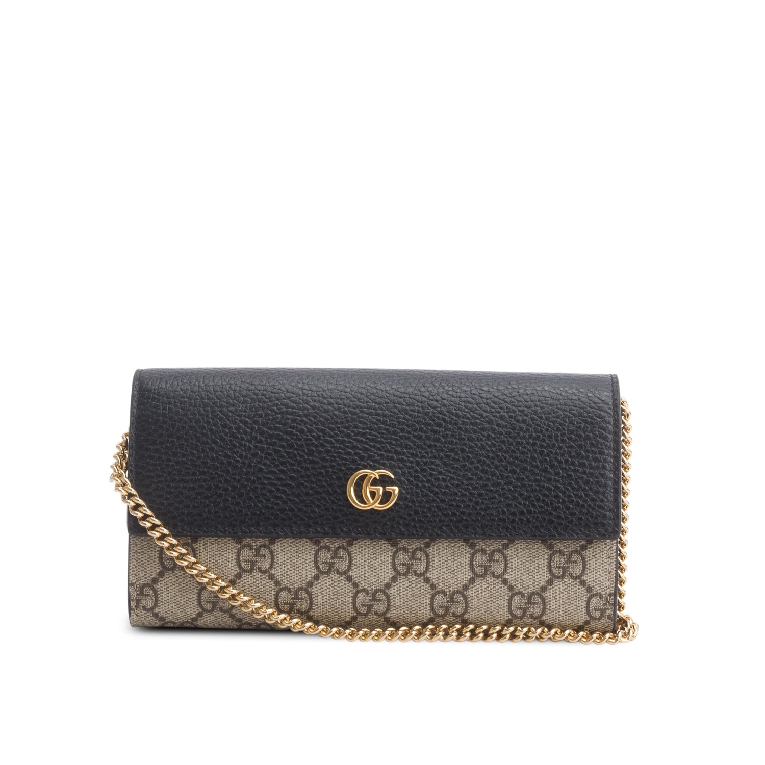 Black Calfskin Leather GG Supreme Marmont Bi-Color Wallet On Chain