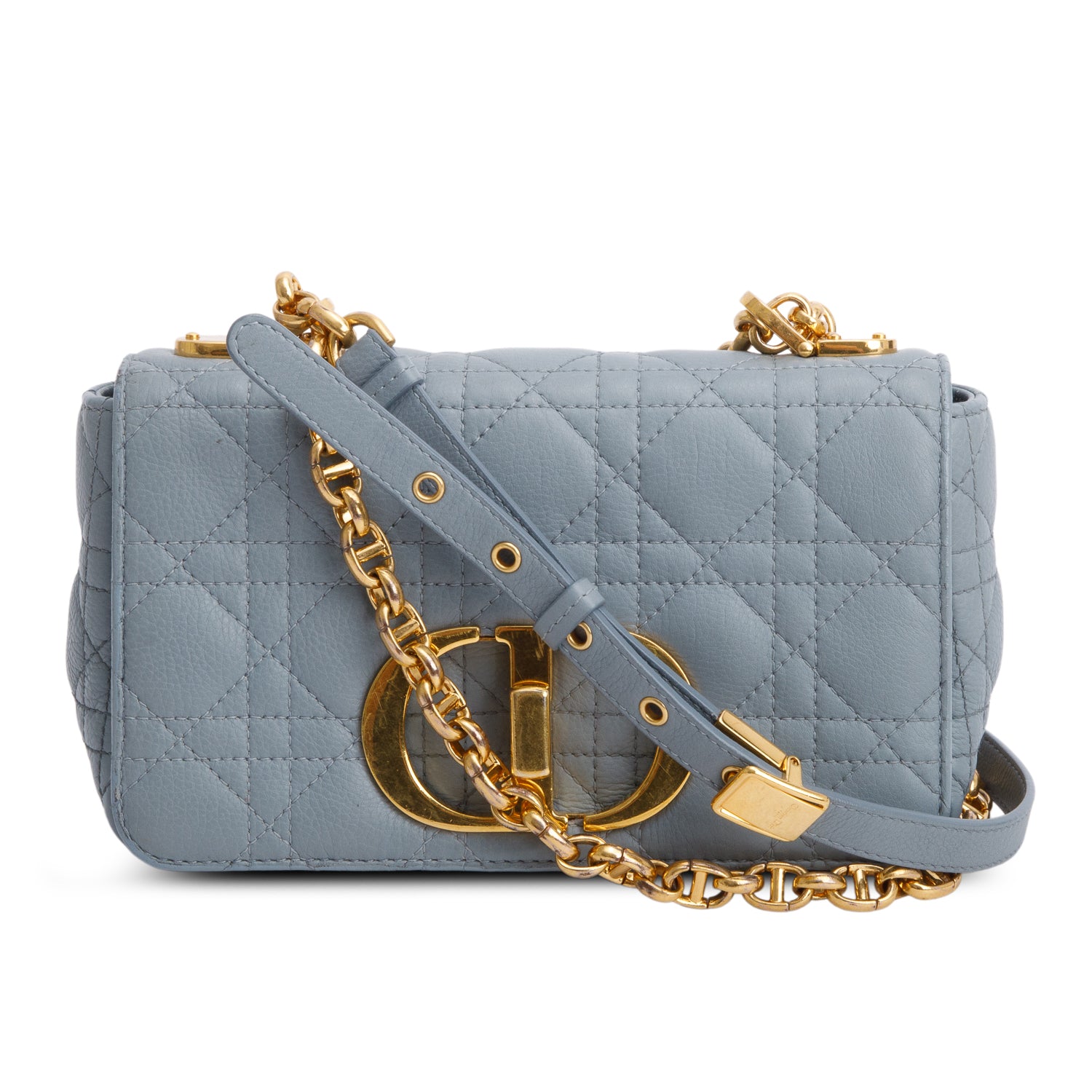 2021 Grey Supple Cannage Calfskin Leather Small Dior Caro Bag