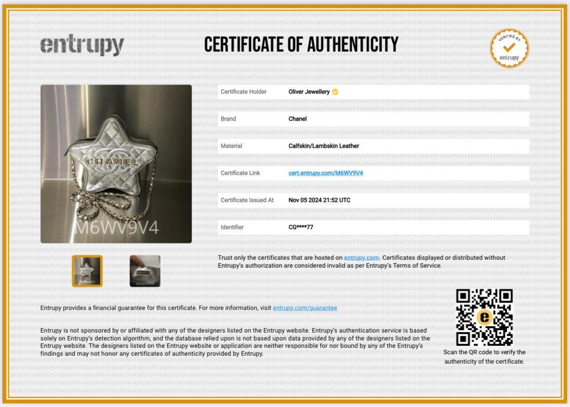 Box, Dust Bag, Entrupy Certificate of Authenticity