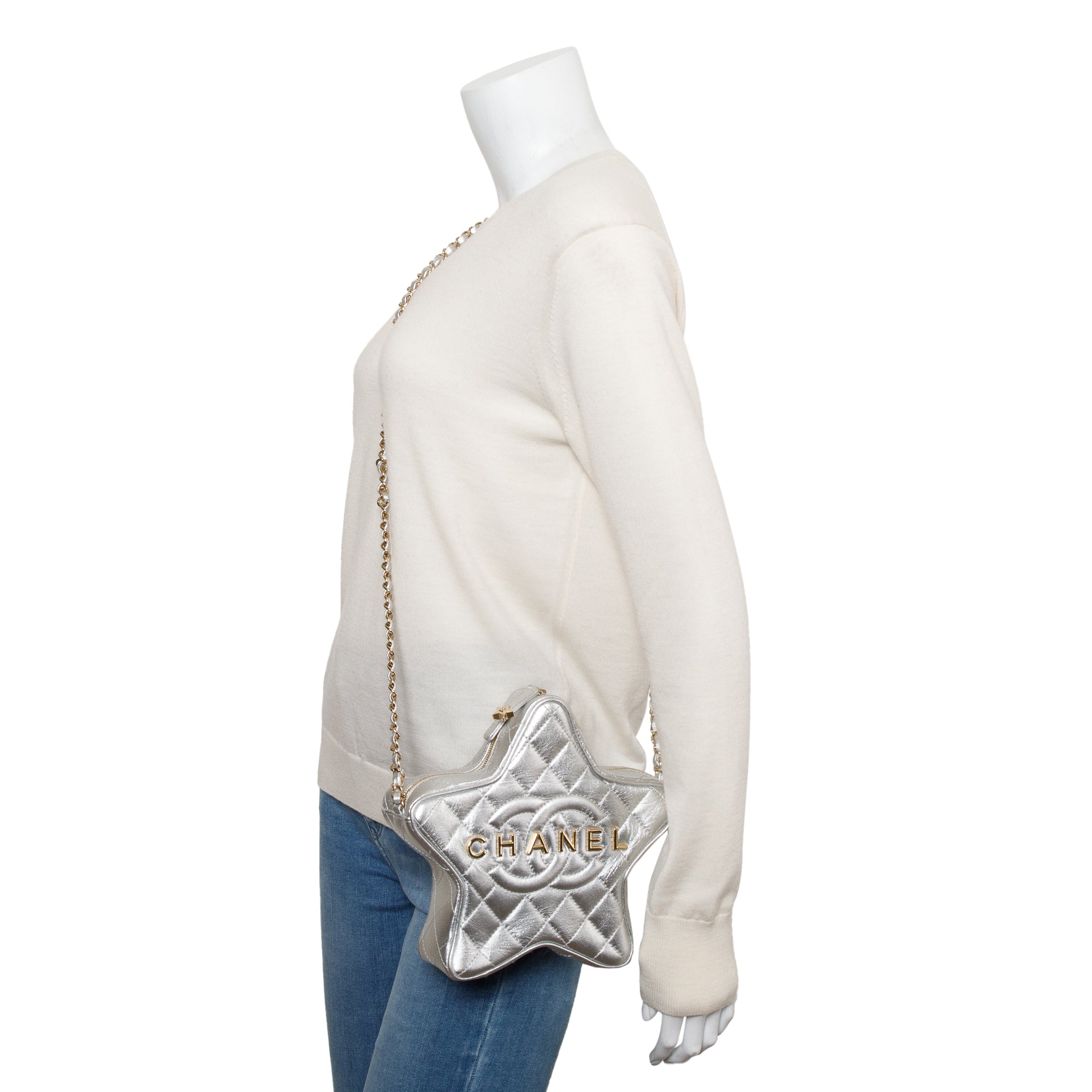 2024 Metallic Silver Leather Walk Of Fame Star Crossbody Bag w/ Box