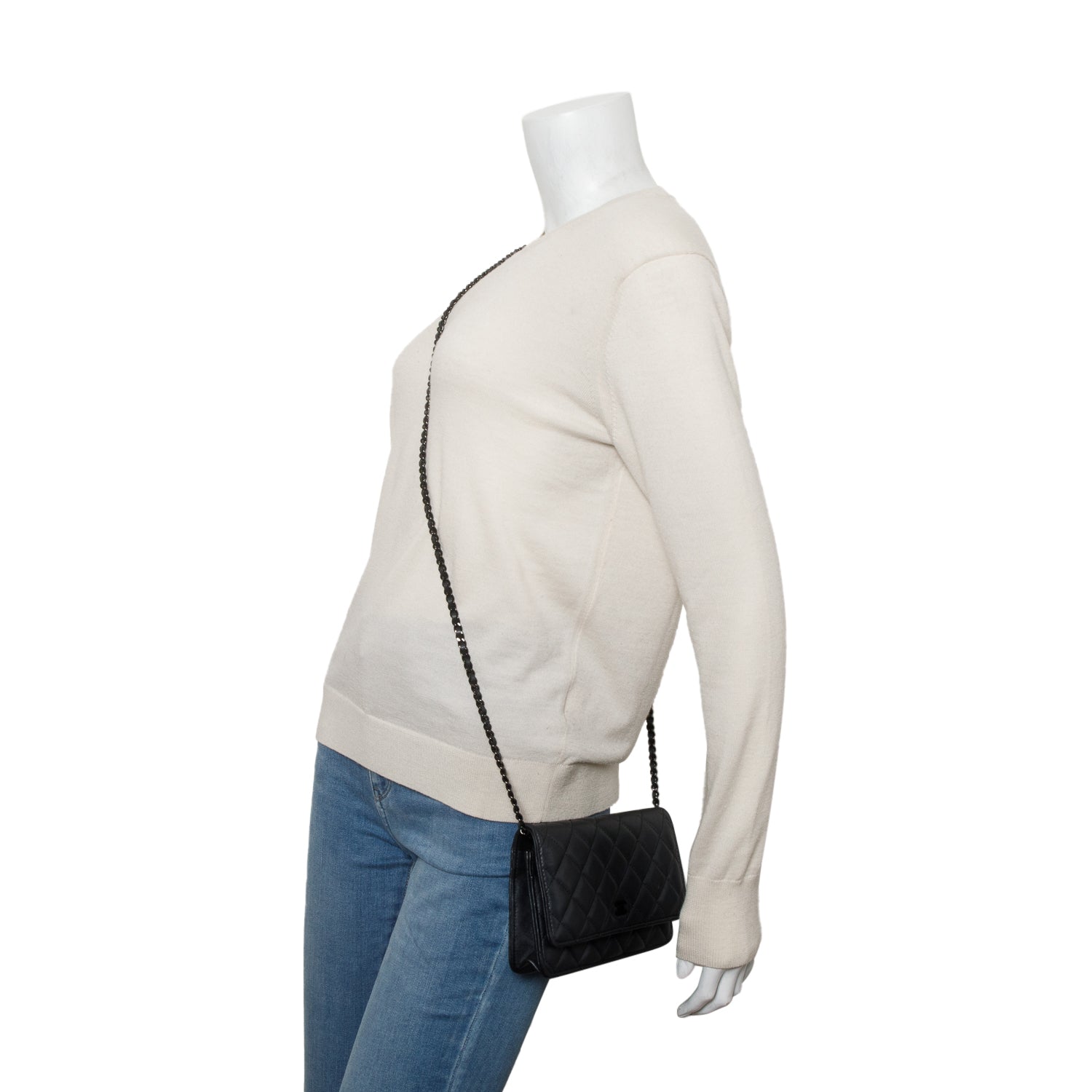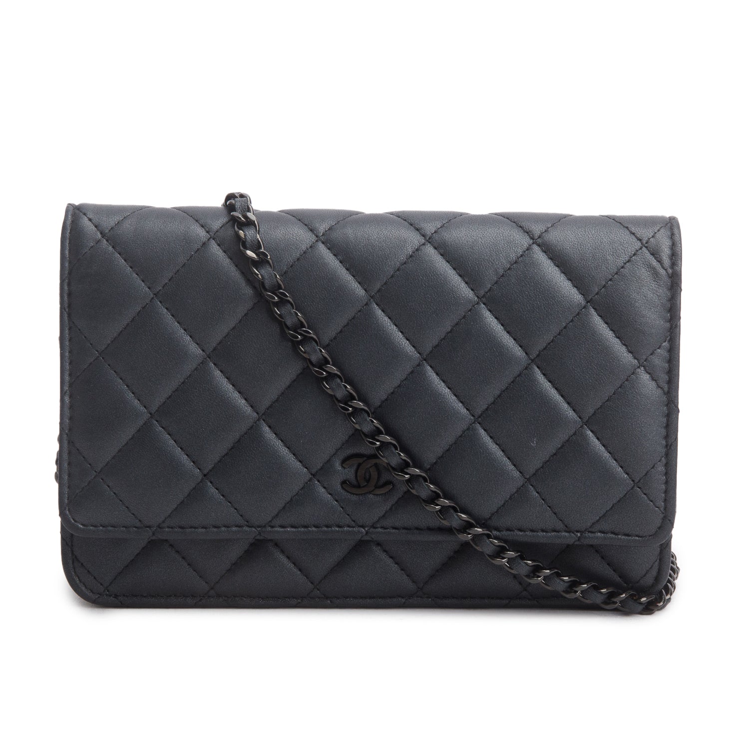 Grey Lambskin Quilted Wallet on Chain WOC w/ Box