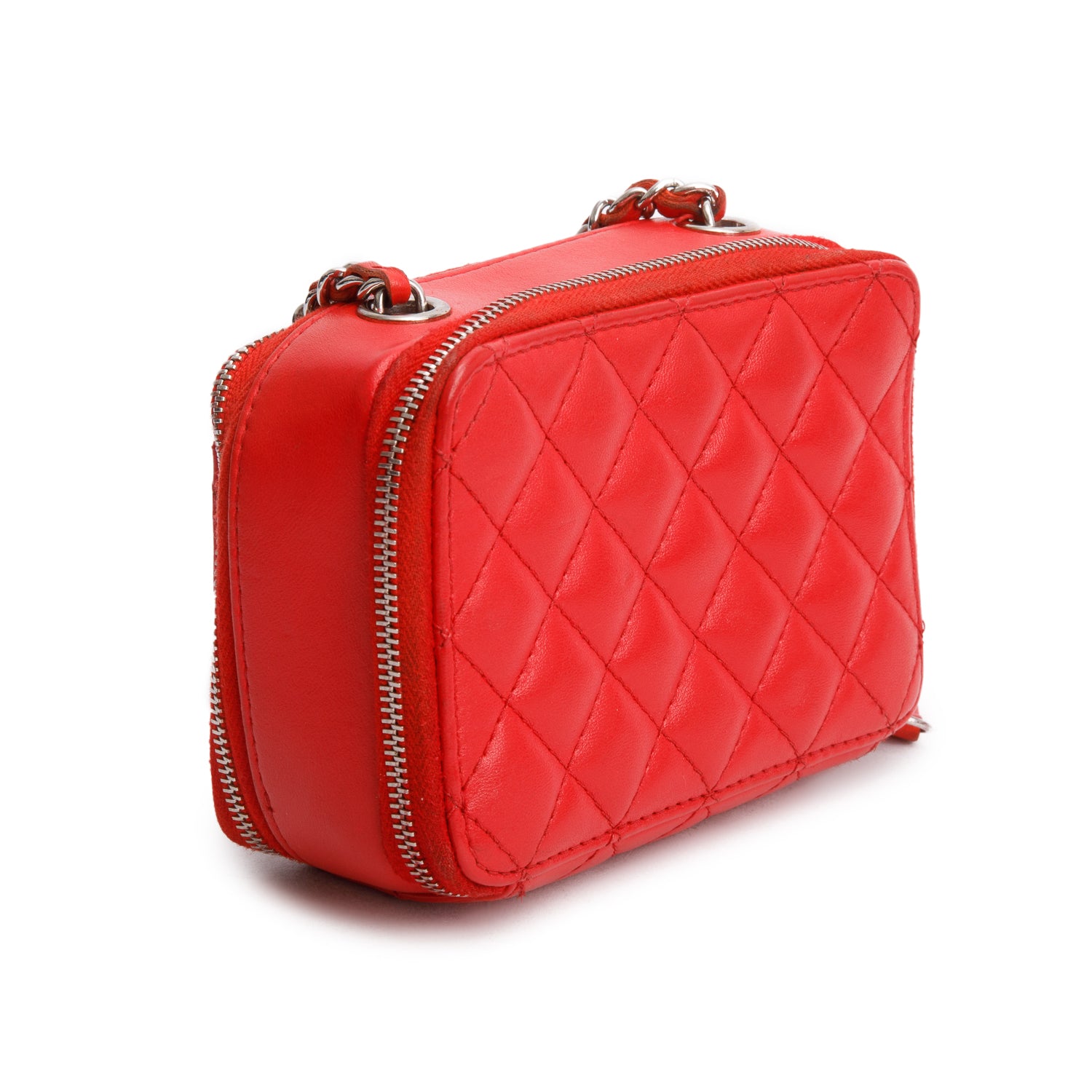 Red Quilted Lambskin Leather Pocket Box Camera Bag