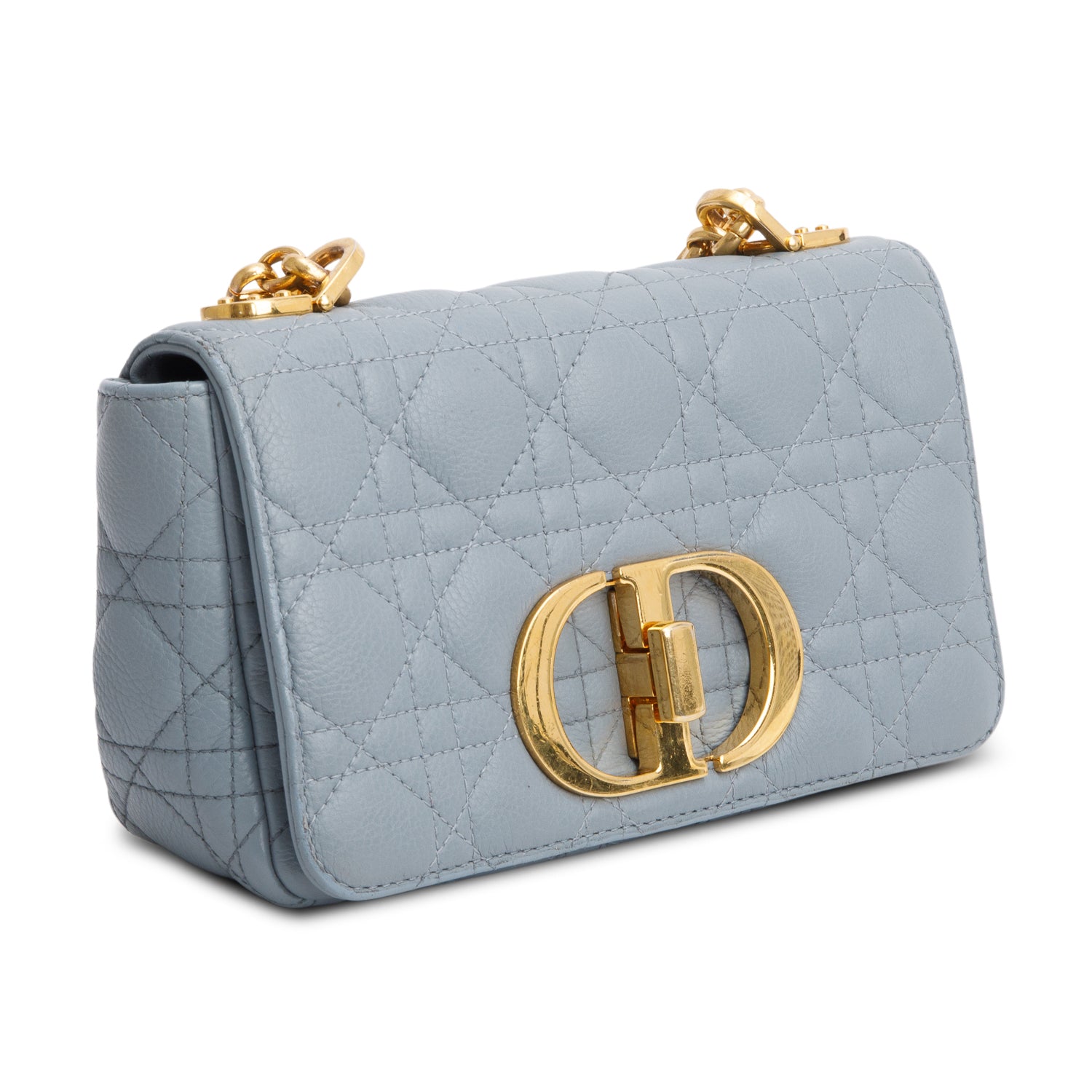 2021 Grey Supple Cannage Calfskin Leather Small Dior Caro Bag