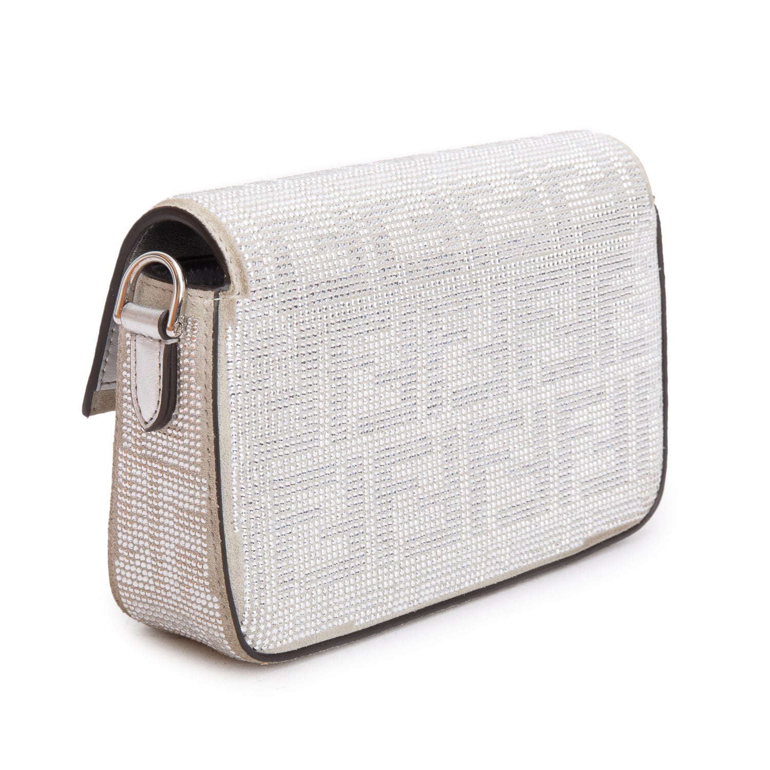 2024 Silver FF Suede Crystal Mini Be Baguette Chain Crossbody w/ Straps & Box