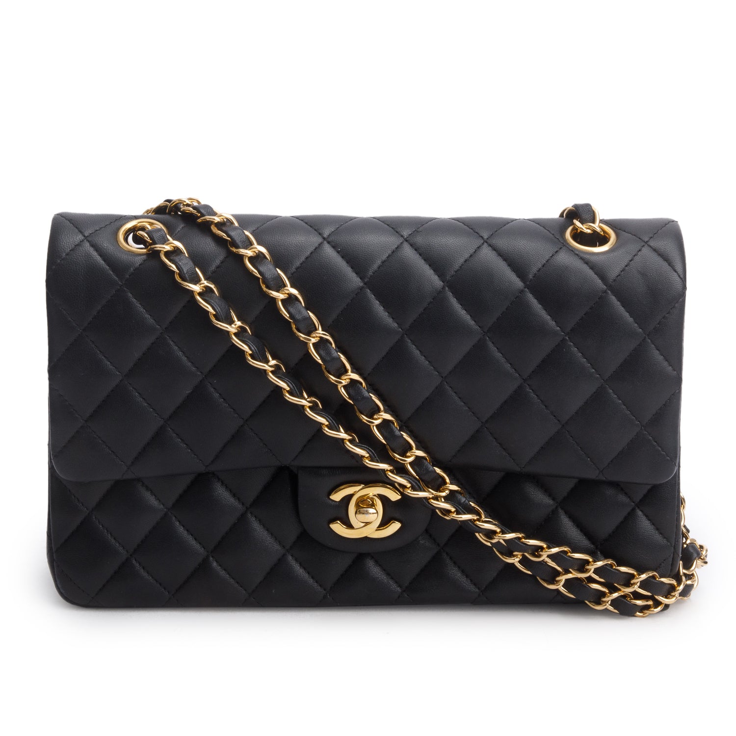Black Quilted Lambskin Leather Classic Medium Double Flap Bag