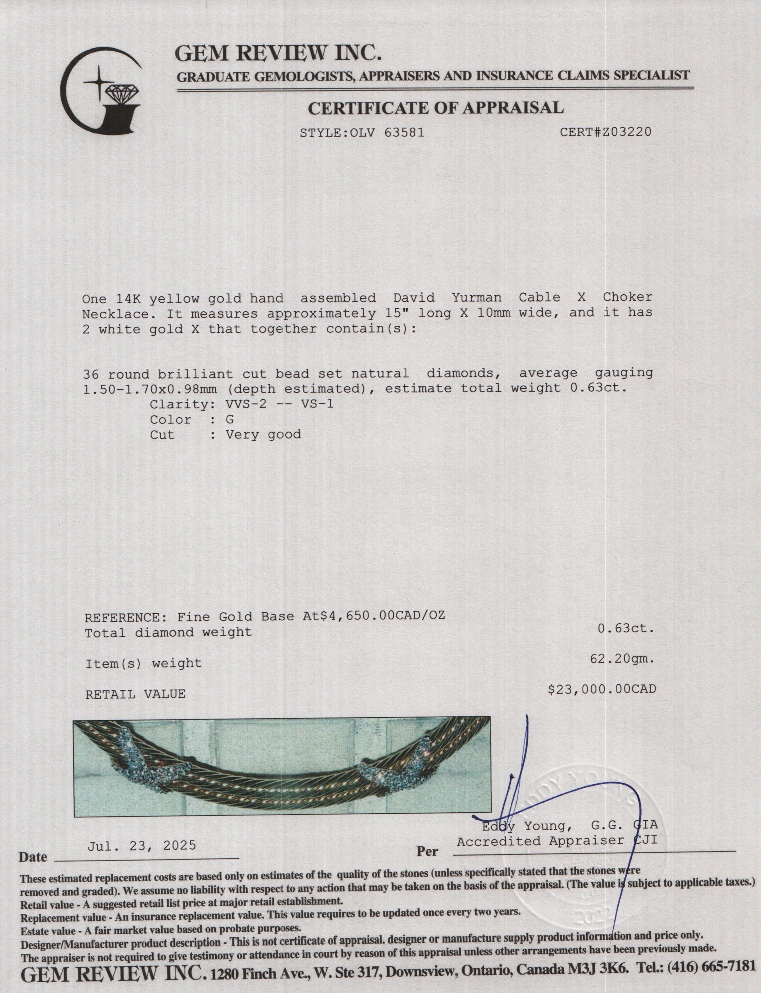 14k Yellow Gold Diamond Cable X Choker Necklace