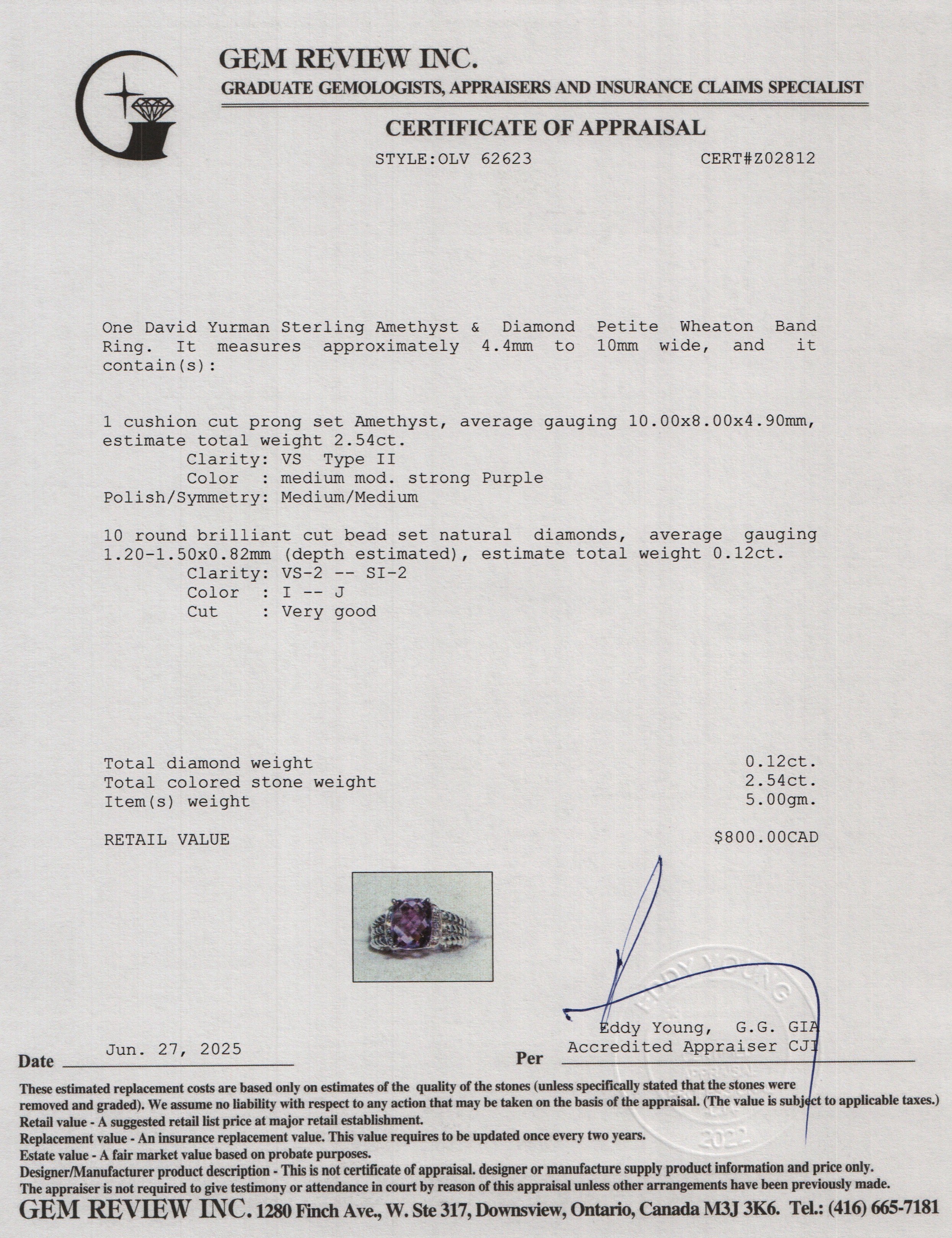 Sterling Amethyst & Diamond Petite Wheaton Band Ring, 10 MM Size 5.75