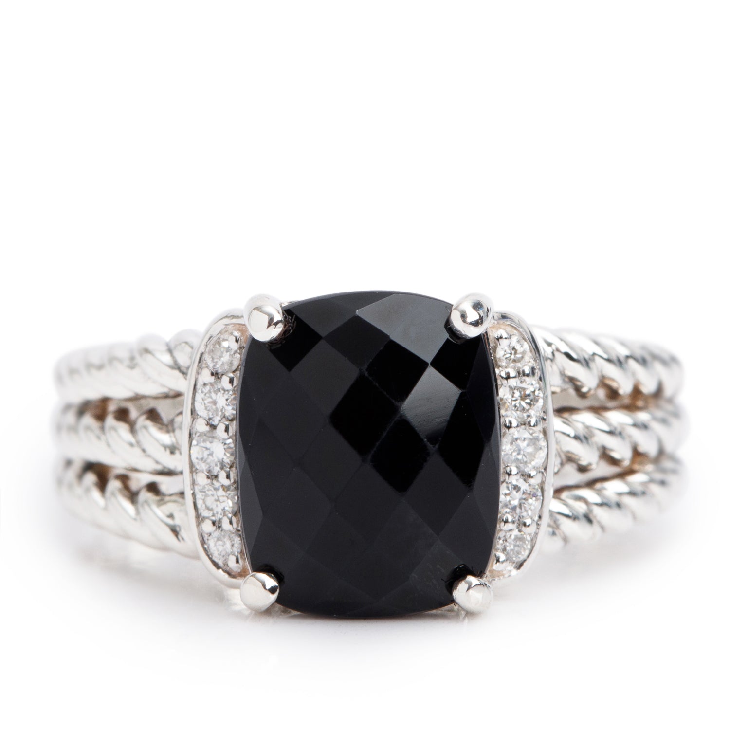 Sterling Onyx & Diamond Petite Wheaton Band Ring, 10 MM Size 5.75