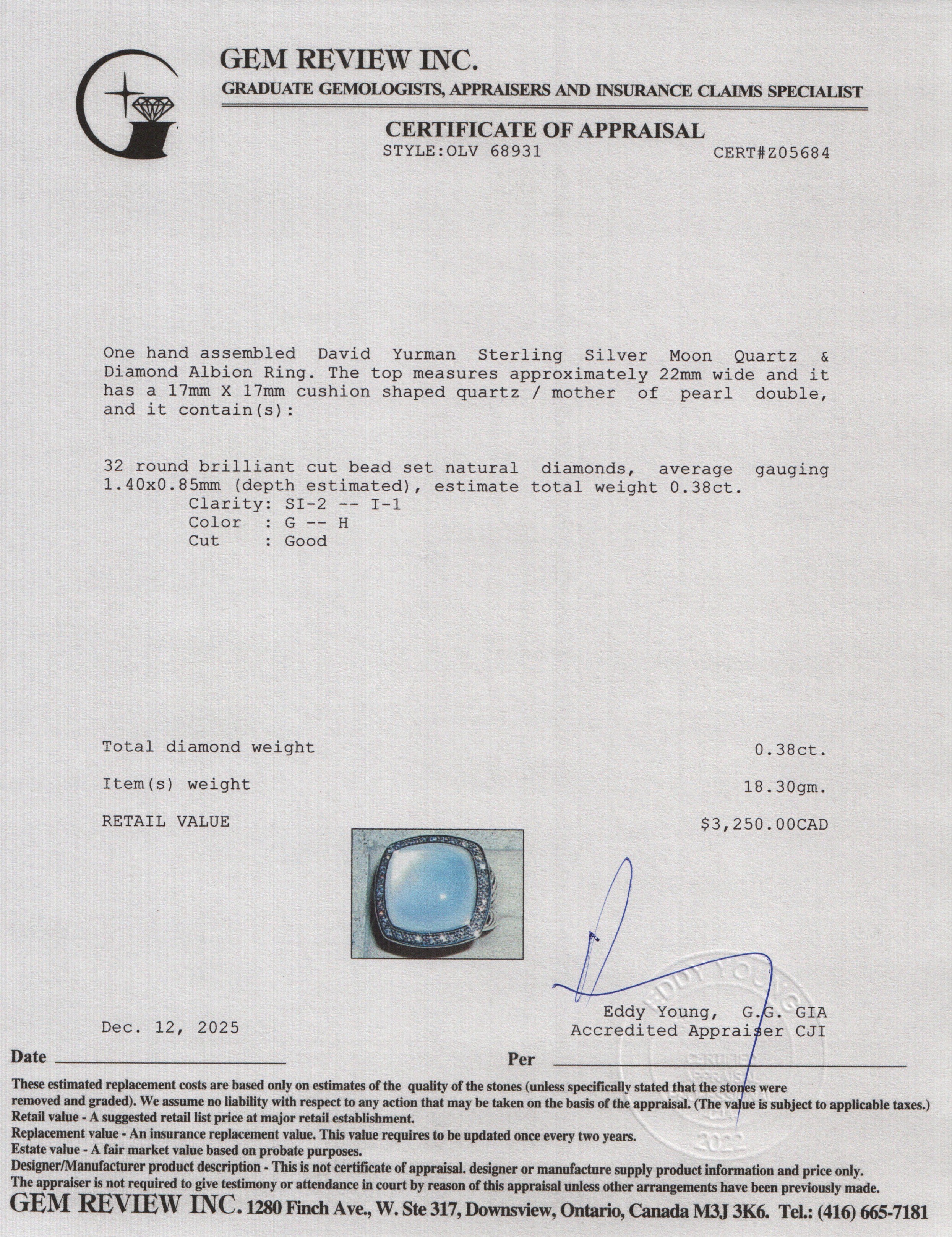 Sterling Silver Moon Quartz & Diamond 17 MM Albion Ring, Size 7
