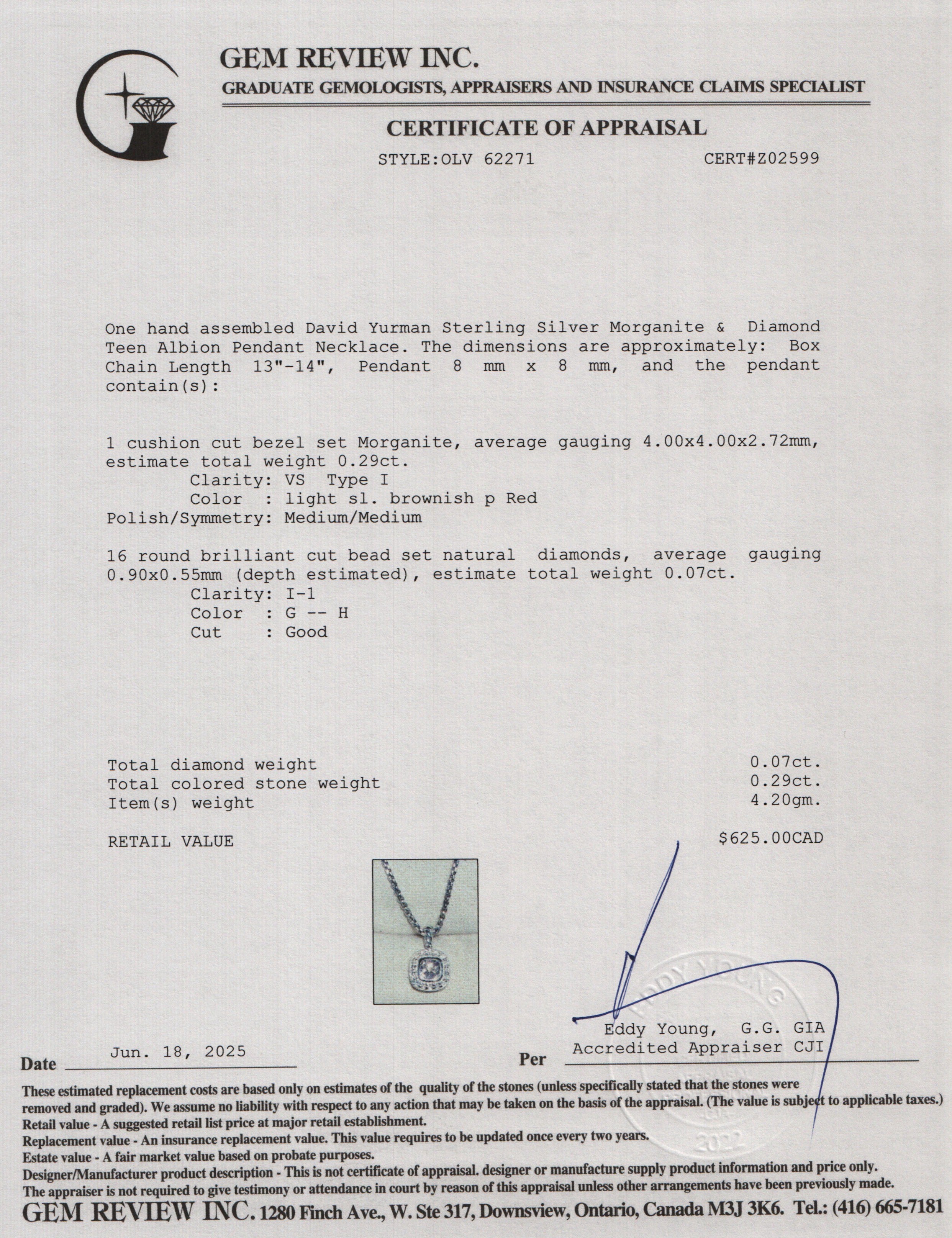 Box Chain Length 13"-14", Pendant 8 mm x 8 mm, Morganite 4 mm x 4 mm