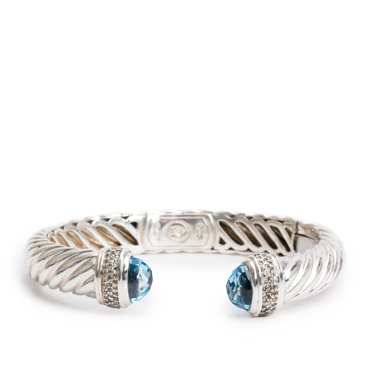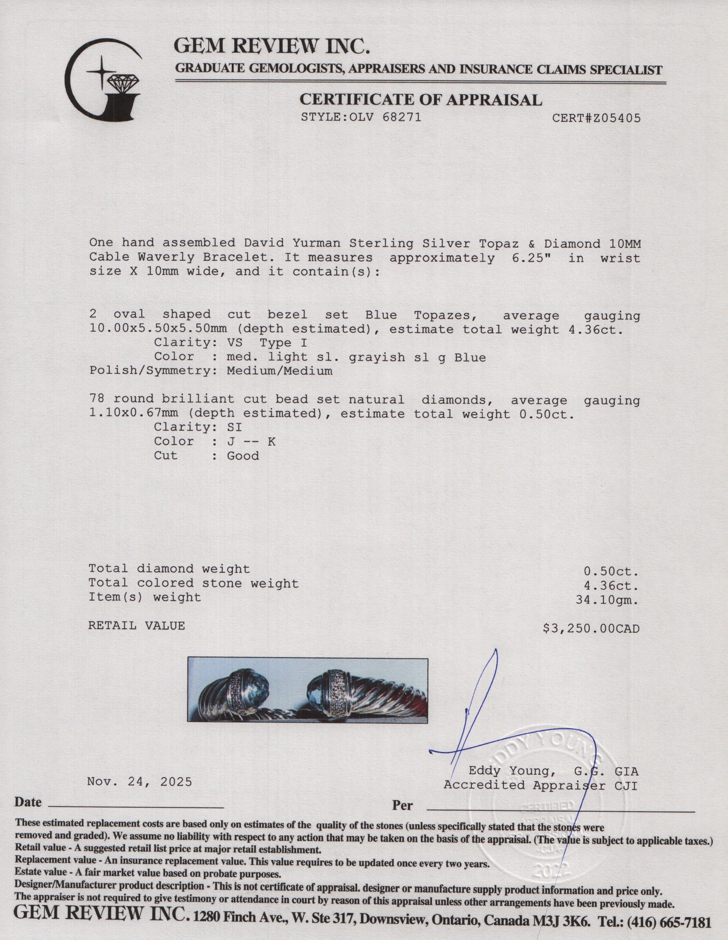 Sterling Silver Topaz & Diamond 10 MM Cable Waverly Bracelet