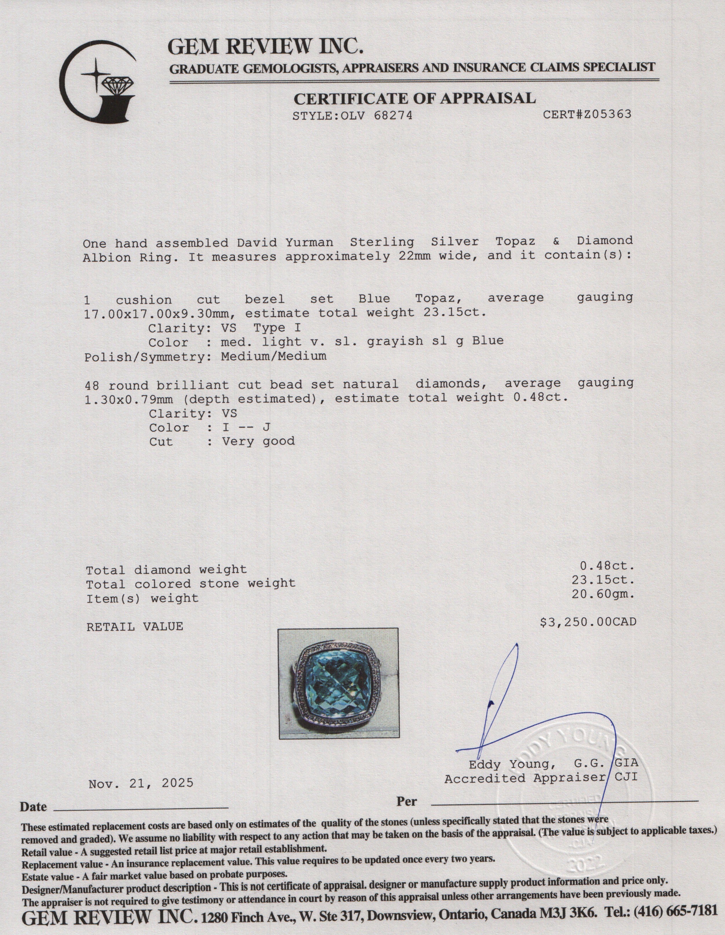 Sterling Silver Topaz & Diamond 17 MM Albion Ring, Size 7