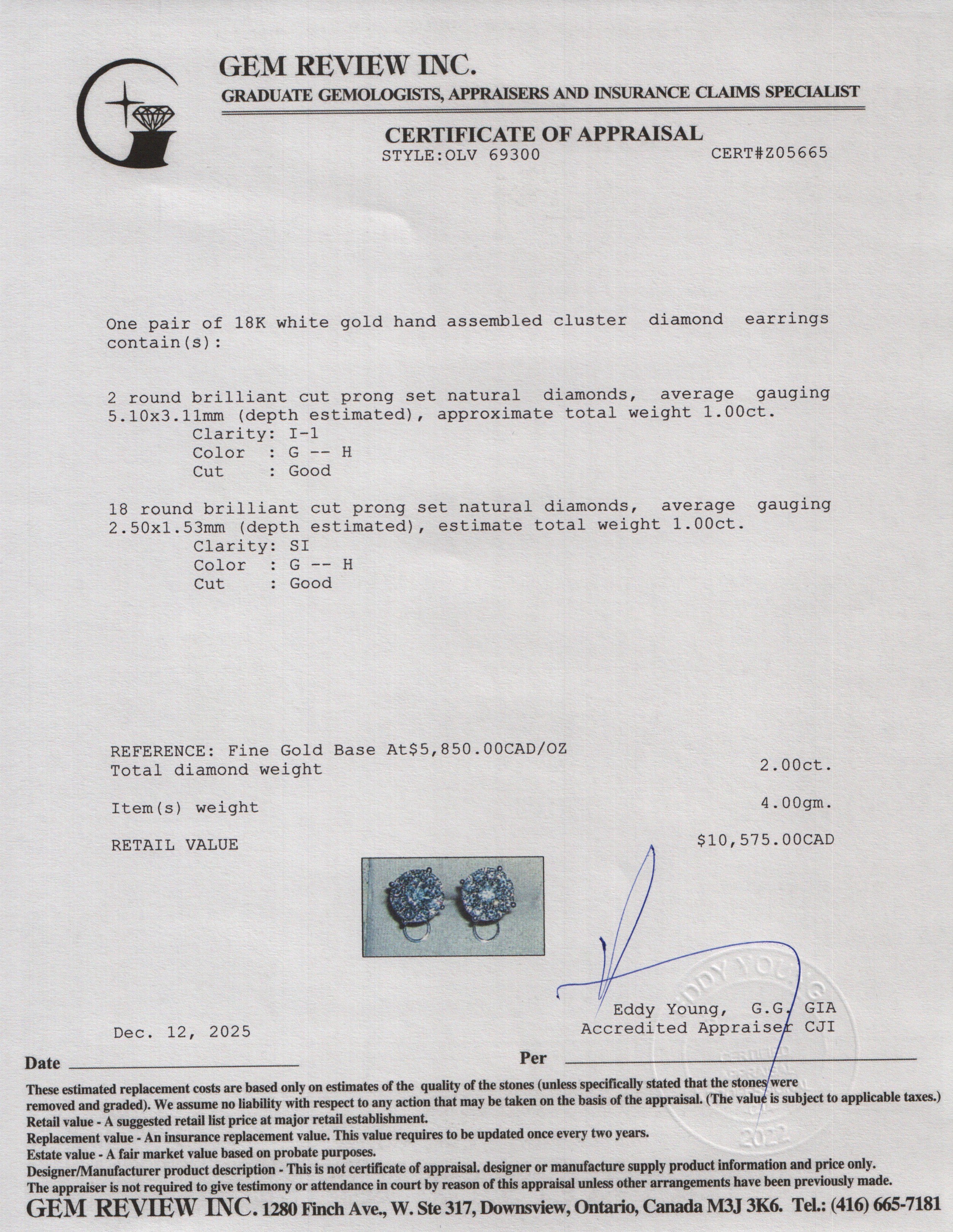18k White Gold 2.00 tcw. Diamond Cluster Stud Earrings