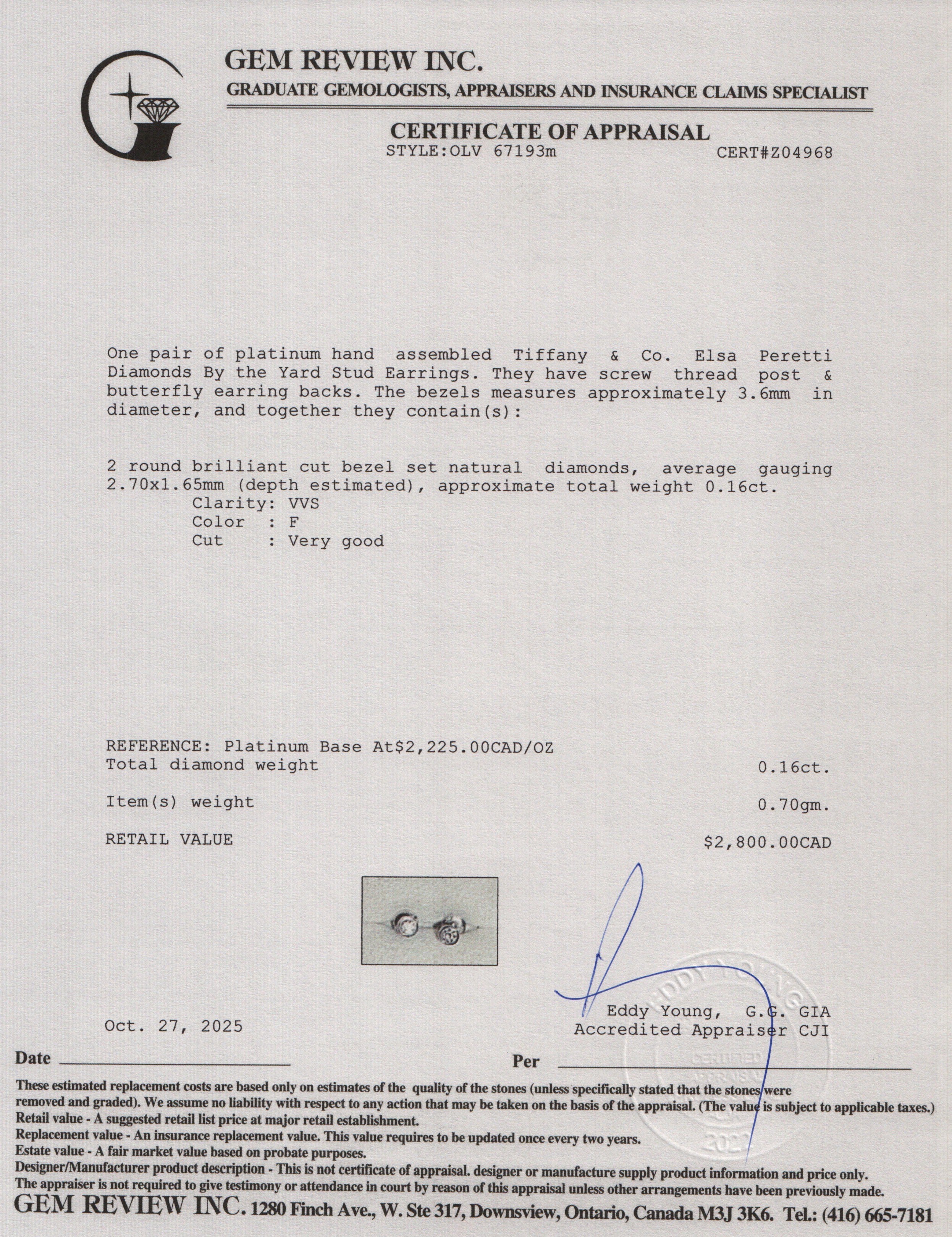 Elsa Peretti Platinum 0.16 tcw Diamonds By the Yard Stud Earrings
