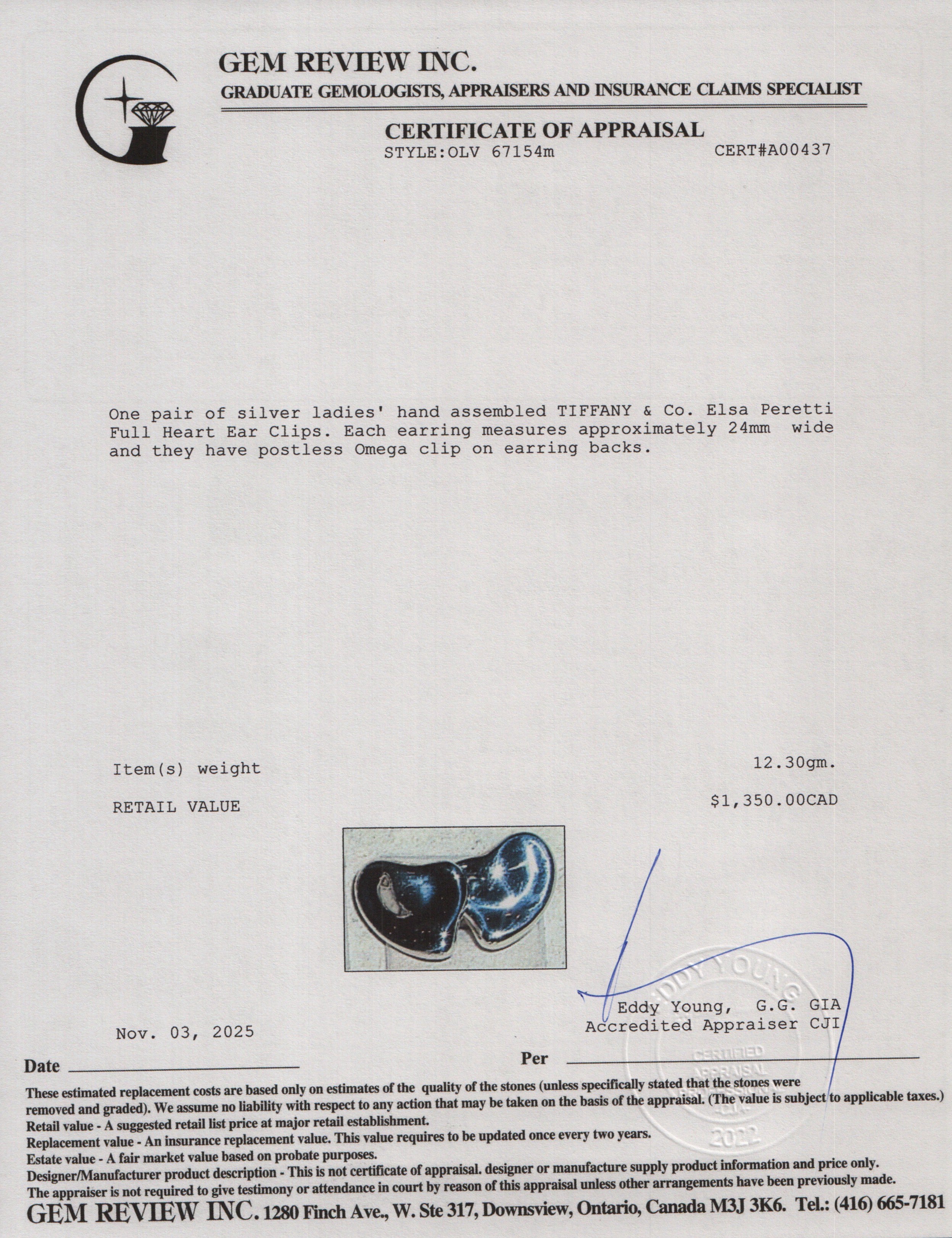 Elsa Peretti Sterling Silver Full Heart Ear Clips