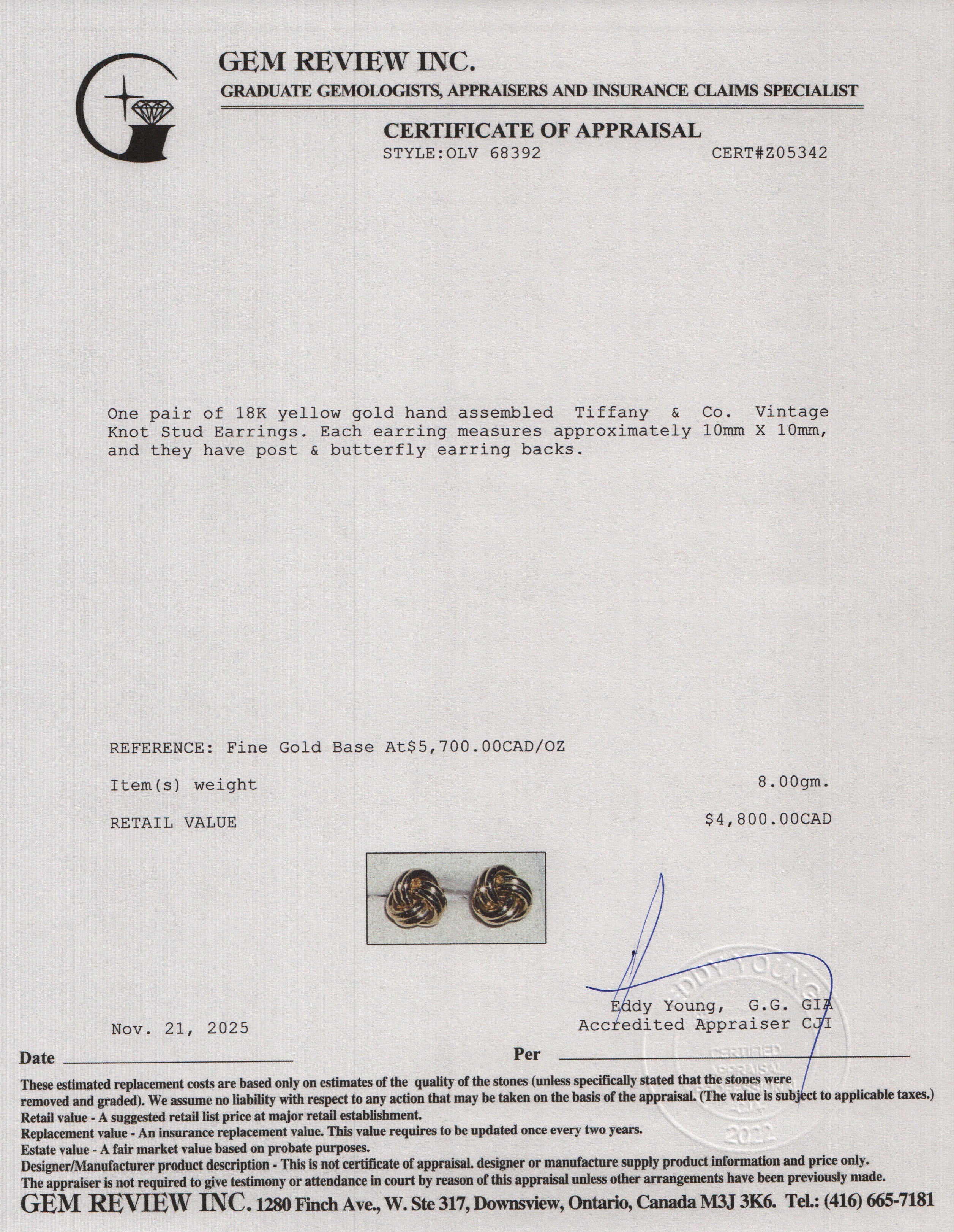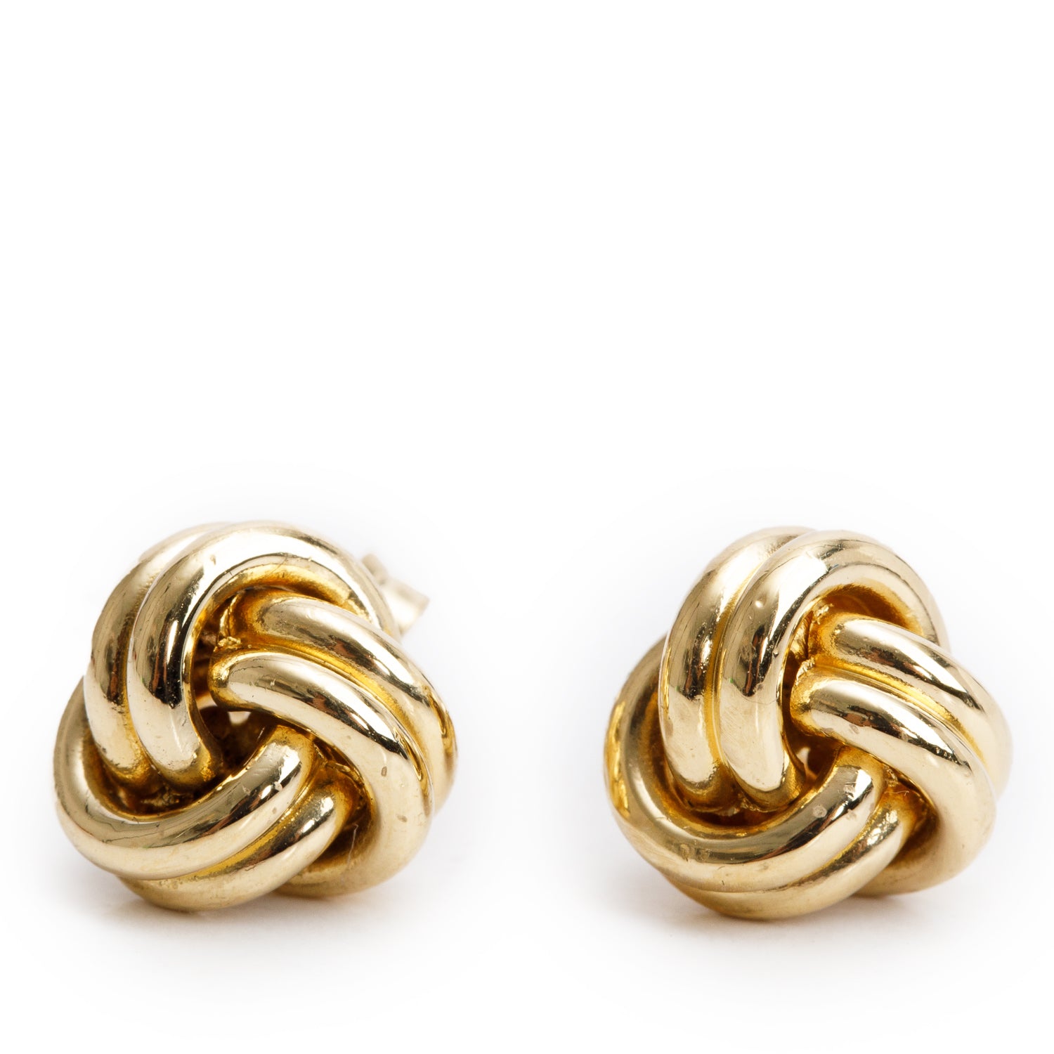 Vintage 18k Yellow Gold Knot Stud Earrings w/ Box